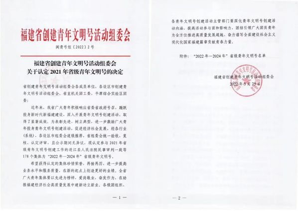 近日,福建省创建青年文明号活动组委会印发《关于认定2021年省级青年文明号的决定》,认定参与2021年省级青年文明号创建工作中的178个集体为2022—2024年“省级青年文明号”,厦门大学后勤集团漳州校区物业部位列其中。