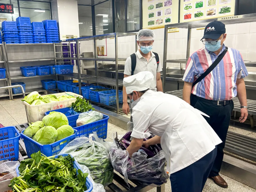 随后,在云南大学饮食服务中心负责人的陪同下,大家实地参观了食堂后厨,包括原辅材料储藏室、冷链储存间、餐具洗消间、切配间及食品留样柜等关键区域,并详细了解了物资采购、卫生管理、食品验收、餐具消毒等标准化流程。此次交流为南强后勤进一步提升高校餐饮服务管理水平提供了宝贵经验。