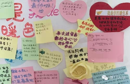 同学们写给保安执勤队的祝福语被珍藏在保安室的墙壁同学们的祝福语被珍藏在保安室的墙