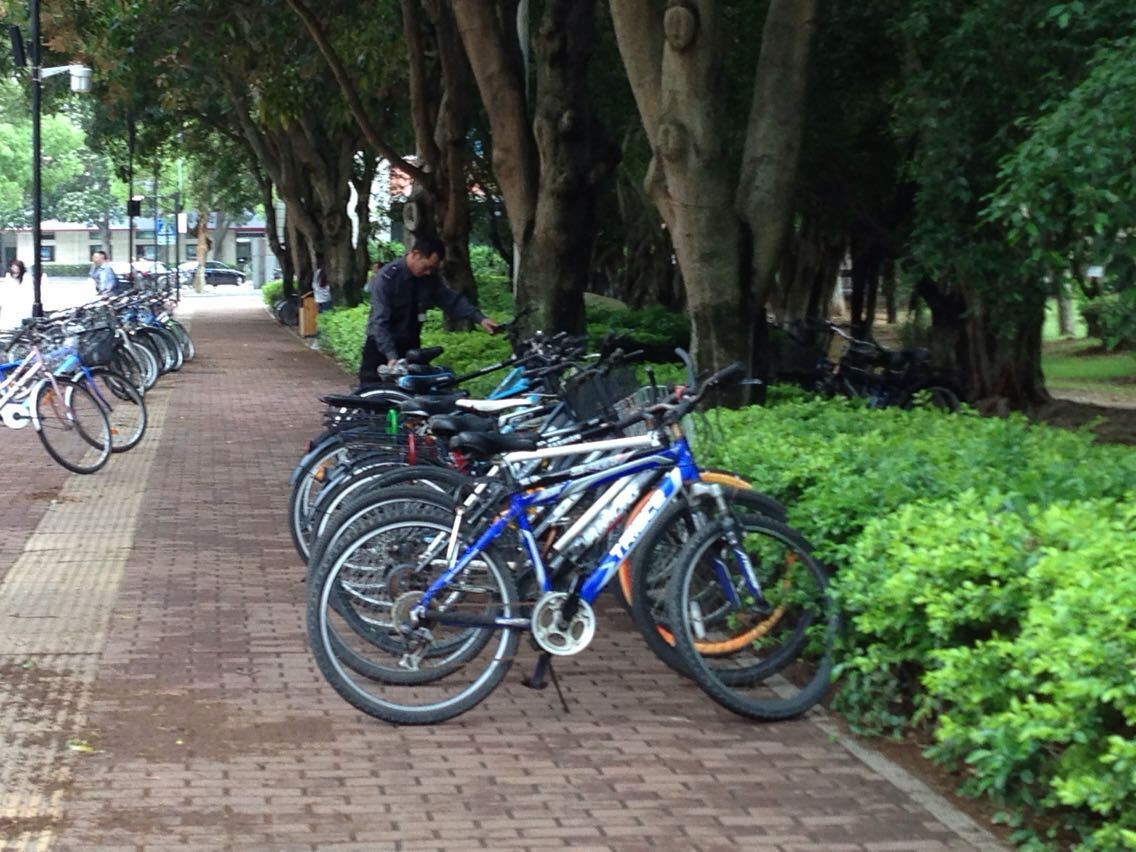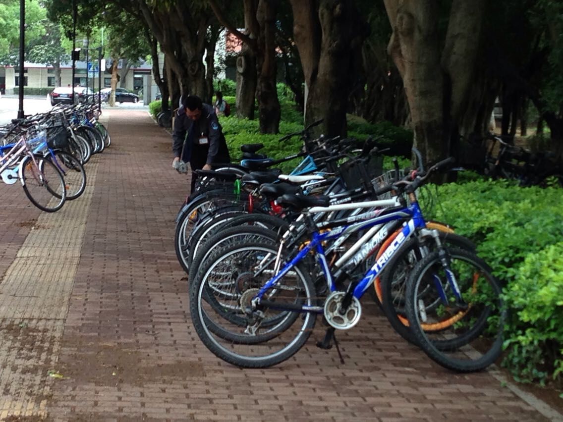 一块抹布,一个小举动,细微服务中见真情 今天上午,笔者到学校办事,走在三家村人行道上,只见一个保安手拿一块抹布,对着一辆自行车擦拭,然后搬到前方摆放整齐,刚开始我以为他在擦拭自己的车,就没太在意,继续前行,走了一会,抬头发现他还在重复着擦拭、摆放的动作,一辆接一辆。笔者忍不住走过去与其攀谈,谈话中了解到,该保安姓庄,是芙蓉2的保安,昨夜的大雨导致路边的芒果花落了很多,学生停放在路边的自行车座位、篮子都落满了花,比较脏,不方便骑,而且整理下保洁人员方便打扫,所以他就走出来整理。 简单的几句话,却是那么的质朴!其实他值班的芙蓉2在马路的对面,而自行车又不是停放在楼道,擦拭、整理摆放车不是他的职责,无关他任何事,他完全可以不做,可是他的这个小小的举手之劳,却方便了学生,使校园更加整洁;这小小的举动,也让我们的校园更加温馨美好! 笔者拿起手机,想拍一段小视频记录下这美好与大家分享,可惜这该死的手机很不给力,在这个时刻没电了,只留有刚才随手拍的几张照片。 厦大身边人