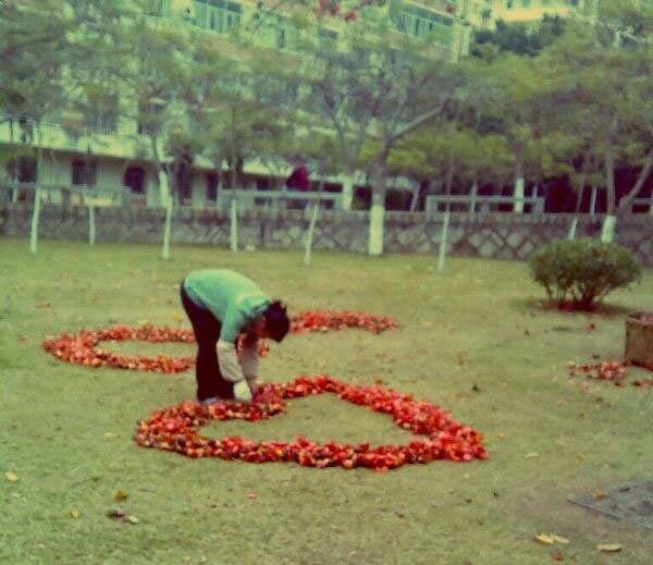 又是一年木棉花开之时,近日,我校后勤集团的清洁阿姨将掉落在草坪上的木棉花摆成爱心形状的照片在网上走红,短短时间引来大量网友的浏览与转发。