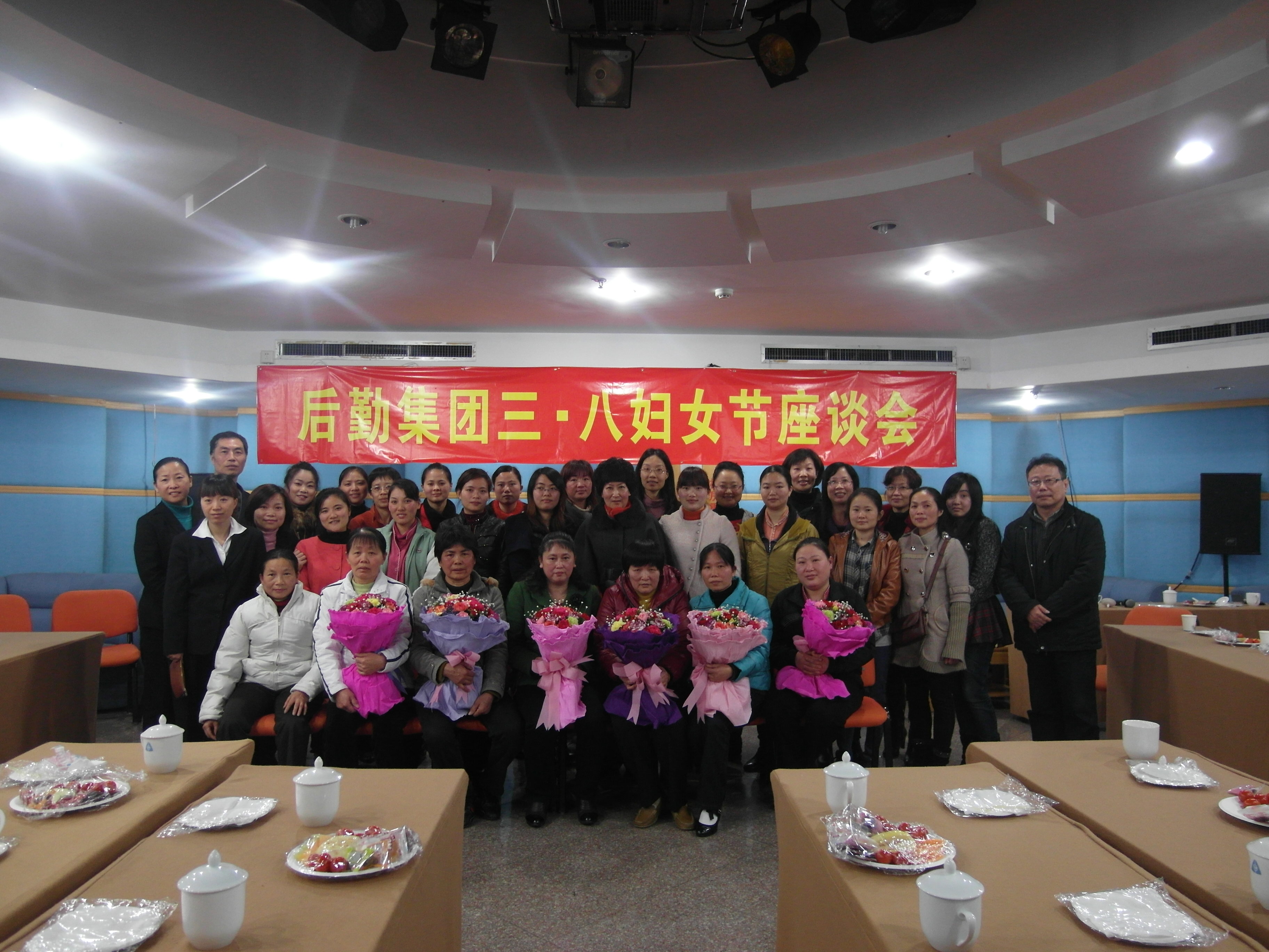 后勤集团举行“三·八”妇女节座谈会 3月8日下午,后勤集团庆祝 “三·八”国际妇女节座谈会在克立楼二楼多功能厅召开。座谈会邀请了集团二级管理岗位以上的女职工、一线女职工代表、2011年集团优秀女职工以及在厦大工作满25年以上的集团女职工参加。集团党总支书记叶鹏飞、副总经理郑庆喜、党总支副书记刘君彬、总经理助理吴泱出席了座谈会。会议还有幸邀请到湖南大学后勤与房地产处后勤管理科主任龙晓红参加。 后勤集团妇委会主任邓泽君主持座谈会。她首先向女同胞们表示了节日的祝贺,希望大家在座谈会上畅所欲言,交流工作、生活中的感想感悟,分享快乐,分担忧愁。随后,在座的女同胞们各抒己见,有说为人父母的快乐和感动、有说生活和工作中的艰辛和苦涩、有说女性要关爱自己才能关爱他人等生活感悟……特别是在厦大工作满25年以上女职工们的发言,她们语言质朴,充满着对厦大的爱、对工作的热情,短短的发言感动了在场的每一个人。 叶鹏飞代表集团向全体女职工致以节日的祝贺,并感谢她们为学校后勤保障工作所作出的贡献。他说,集团女职工确实不容易,后勤工作累,工作环境差,但大家能充分发扬吃苦耐劳的传统美德,在平凡的工作岗位上做出了不平凡的贡献,希望大家能继续以饱满的热情愉快地工作、幸福地生活。最后,集团领导为在厦大工作满25年以上的集团女职工献上鲜花,并与座谈会代表们合影留恋,将这难忘的瞬间留在所有人的记忆中。 此次座谈会是后勤集团“三·八”妇女节系列活动之一,近期还将开展一些丰富多彩的活动,活跃女职工的业余文化生活,促进女职工的身心健康发展。 集团妇委会:高美芸 2012年3月9日