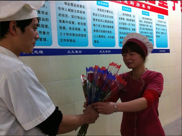最美“三·八”女人花 —饮食服务中心赠花欢祝“三·八”妇女节 阳春三月,春暖花开,时逢第102个“三八”国际劳动妇女节,为答谢辛苦工作的女员工,饮食服务中心向每一位女员工赠送玫瑰花。 “三八”妇女节是关注女性、尊重女性、爱护女性的节日。中心沿袭关爱女员工传统,根据在岗女员工数量,预订了八百多支玫瑰,并于节日当天赠送给在岗女员工。 “啊?!第一次收到玫瑰花,还是单位送的。这个“三八”节,我太开心了!”有些收到花的员工感到又意外又惊喜,激动地热泪盈眶。 文/饮食服务中心林兵滨 图/饮食服务中心郑赛莉、王湘