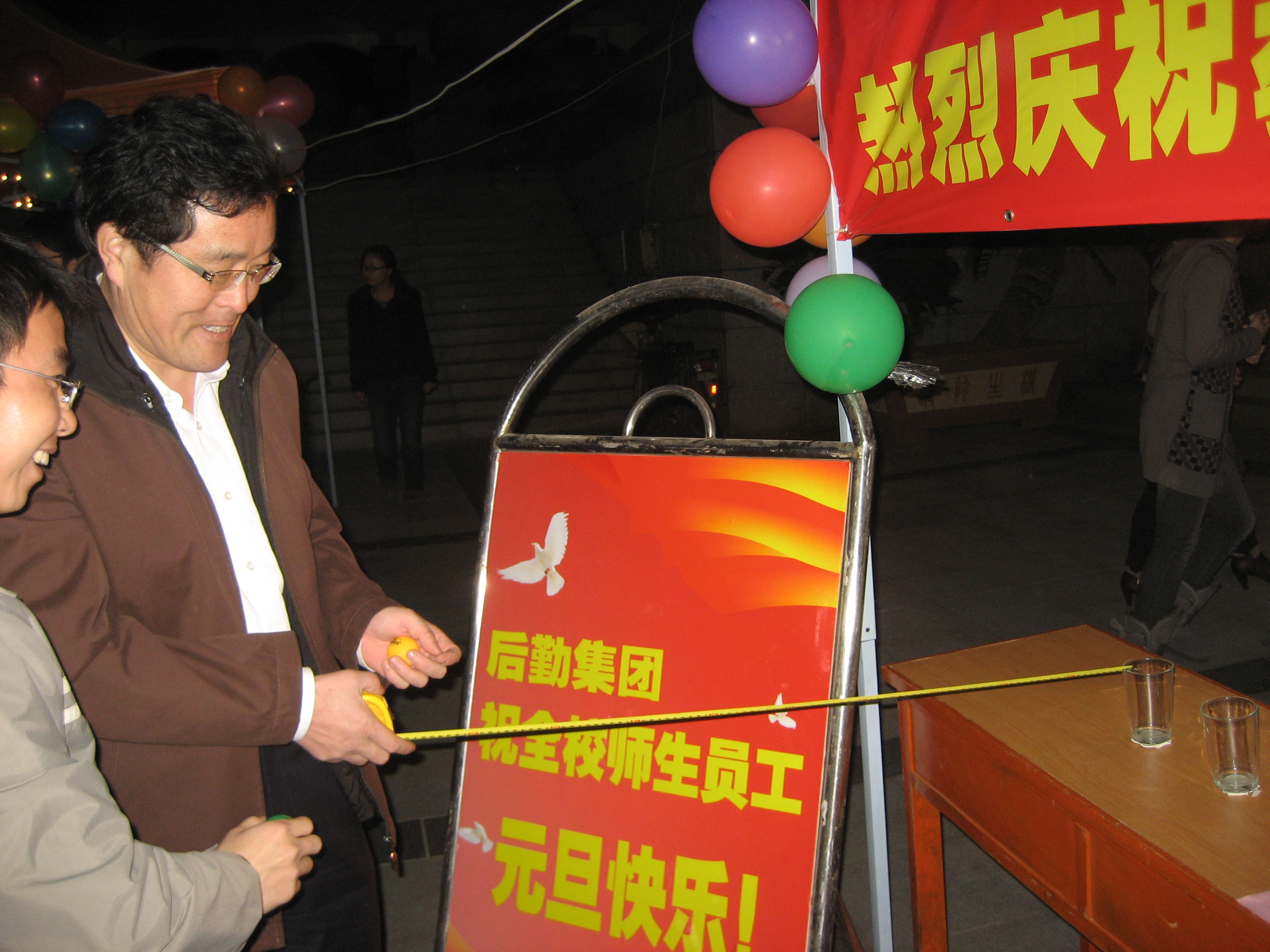 元旦游园会 欢乐满校园 12月30日晚上,我校迎元旦游园活动在嘉庚广场举行,后勤集团荣获最佳人气奖。 “几点开始啊?”“可以先试玩一下吗?”在后勤集团布置的活动点前,师生员工早已排成长队,有的注视着海报,有的询问游戏规则。晚上7点整,游园活动正式开始,刚已“热身”过的师生迫不及待地玩起游戏。 后勤集团为这次活动作了充分准备,设计了三个游戏——好运转转来、柴米油盐醋、乒乓球过卷尺桥。游戏好运转转的奖品是一个煮熟的鸡蛋,“蛋”与“旦”同音,寓意“元旦快乐”。柴米油盐醋即套圈,奖品丰厚,有蜂蜜、酱油、陈醋、甜辣酱、凉拌酱等,这可是后勤集团游园活动上的传统项目,不少去年套中奖品的老师还特意来摊位上大显身手。乒乓球过卷尺桥分三关,分别将卷尺拉开1米、1.5米和2米的长度,乒乓球在卷尺上滚动,30秒内落入杯中即成功。此游戏很受欢迎,游园结束奖品分发完后,还有不少同学想玩,“没有奖品也可以。” 游园活动持续了两个多小时,营造了欢乐和谐的校园新年气氛,丰富了师生员工的文化生活,让他们在紧张忙碌的工作学习之余得到了轻松和愉悦,更在岁末隆冬提前感受到了春天浓浓暖意。饮食服务中心蔡佩玲