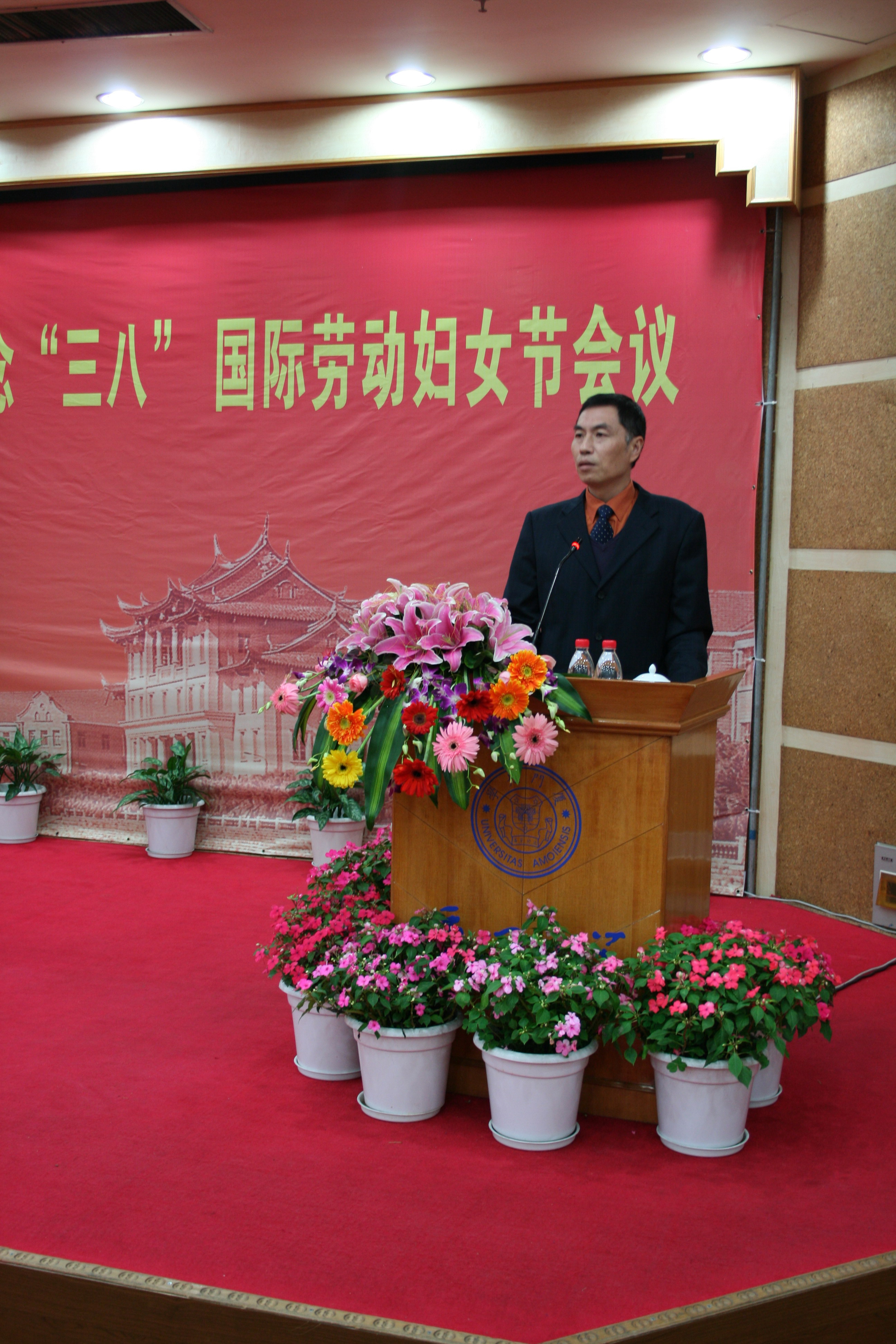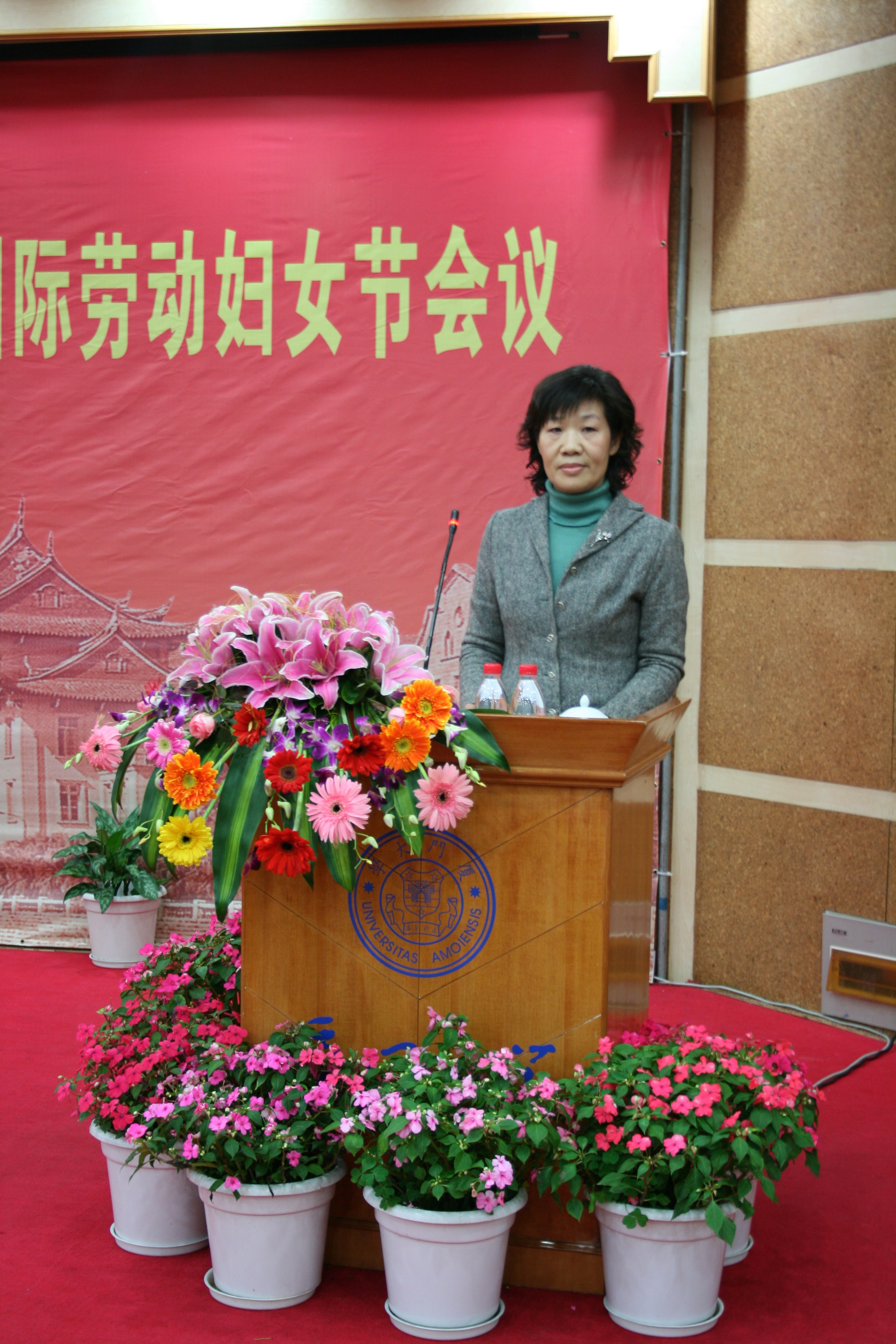 后勤集团举行纪念“三八”国际劳动妇女节100周年大会 3月8日下午,为纪念“三八”国际劳动妇女节100周年,进一步激发广大妇女弘扬“自尊、自信、自立、自强”精神,后勤集团在克立楼报告厅隆重举行纪念大会,会上还表彰在后勤各项工作中涌现出来的“三八”红旗手。学校工会副主席陈毅辉莅会致辞。后勤集团领导班子成员、二级以上管理人员、受表彰员工、职工代表以及工青妇委员近200人参加了会议。 陈毅辉首先对后勤集团纪念“三八”国际劳动妇女节大会的召开表示了衷心的祝贺!他说,后勤集团对学校事业的发展做出了重要的贡献,希望后勤广大女职工继续发扬“三先”服务理念,为学校制定的目标任务提供优质高效的后勤服务保障。 后勤集团党总支副书记庄惠美代表集团党政领导班子讲话,她首先向集团1600多名女职工致以节日的祝贺,对学校领导给予集团妇女工作的支持和肯定表示诚挚的谢意。她说,后勤集团全体女职工在后勤的各项工作中充分发挥了“半边天”的作用,充分展示了女性的风采,在平凡的工作岗位上取得了不平凡的业绩,为集团的发展作出了重要贡献。同时,她对集团全体女职工提出三点希望:一是要勤奋学习,提高素质;二是要立足岗位,建功立业;三是要关爱家庭,奉献社会。 接着,水电服务中心办公室主任陈雪珍、学生公寓与环境服务中心漳州物业部管理员林艳先后作为“三八”红旗手代表发表感言,畅谈学习和工作的经验。 会议主持人、后勤集团妇委会主任邓泽君宣读表彰决定。在欢快的乐曲和热烈的掌声中,陈毅辉和集团领导为“三八”红旗手颁发了荣誉证书,并合影留念。 后勤集团党总支书记叶鹏飞还和与会代表一起学习了胡锦涛总书记3月7日在纪念“三八”国际劳动妇女节100周年大会上的重要讲话,并对此次会议做了总结。他说,集团召开的纪念“三八”国际劳动妇女节大会意义重大、影响深远,充分体现了学校和集团对女职工工作的高度重视和关心,希望以此为契机开创集团女职工工作的新局面。希望集团各单位组织女职工认真学习并贯彻落实胡总书记在纪念“三八”国际劳动妇女节100周年大会上的重要讲话精神,进一步弘扬“自尊、自信、自立、自强”的时代精神和勤劳勇敢、智慧善良的传统美德,在平凡的工作岗位上实现自己的价值,为后勤的育人事业做出自己的贡献。 集团妇委会:高美芸