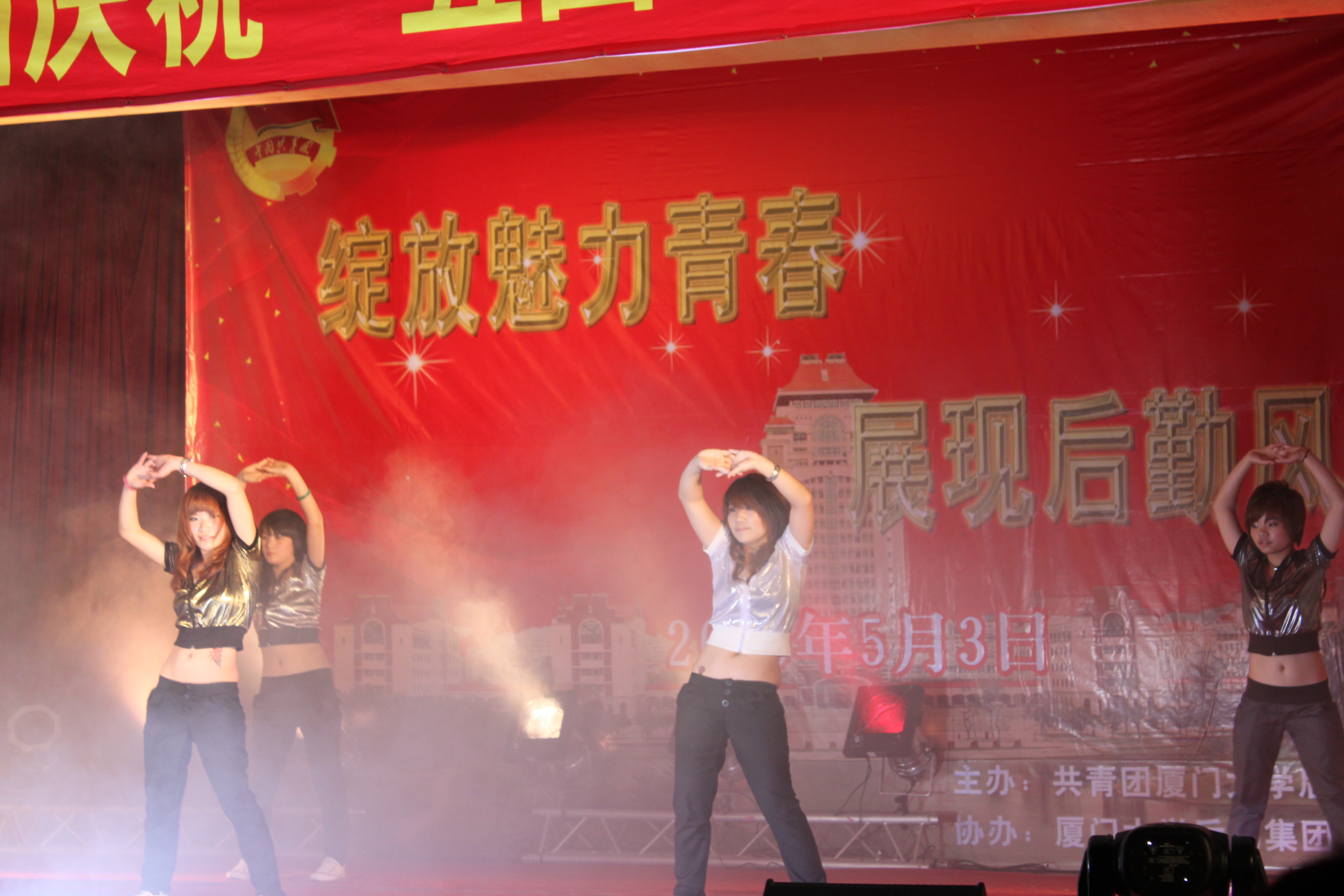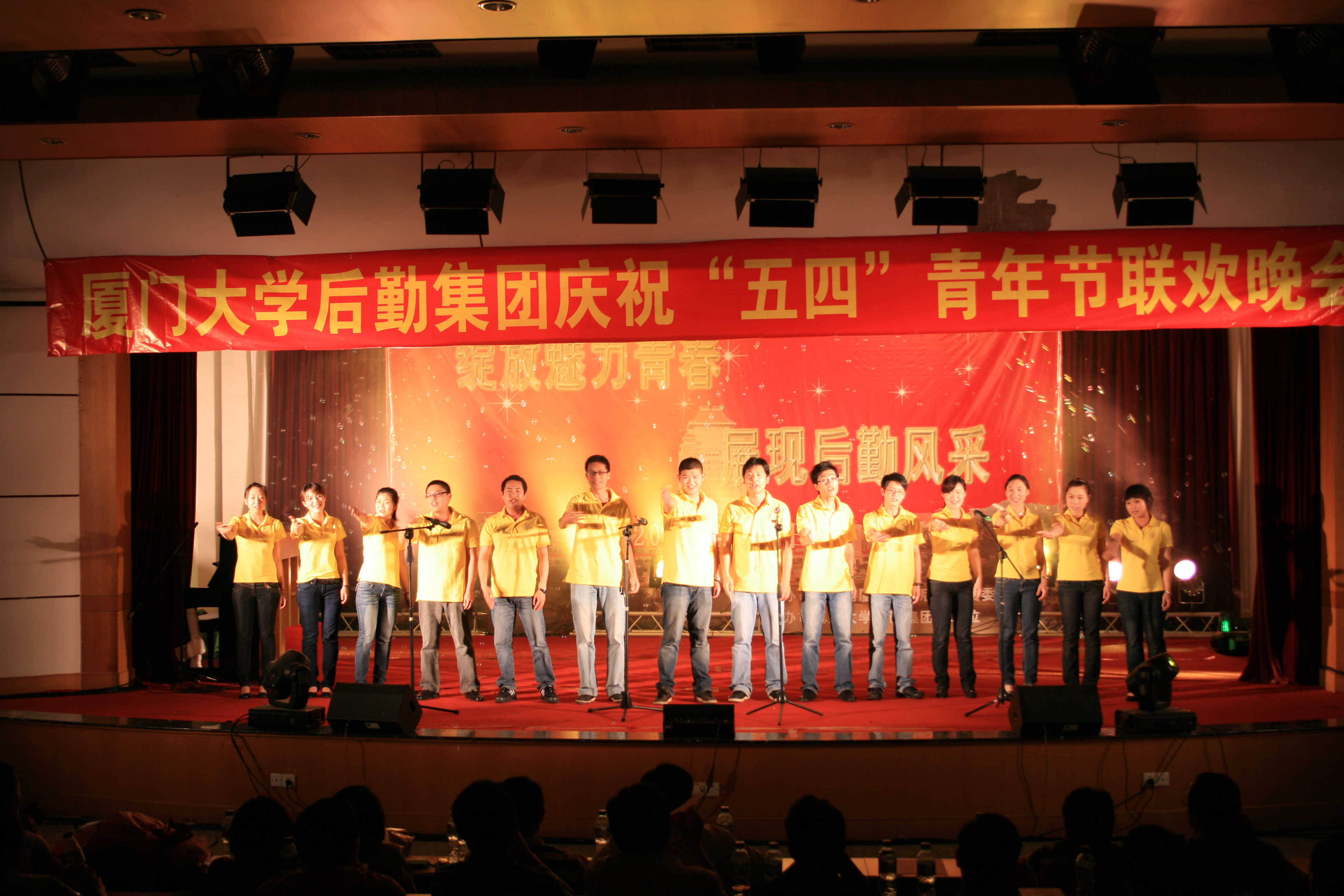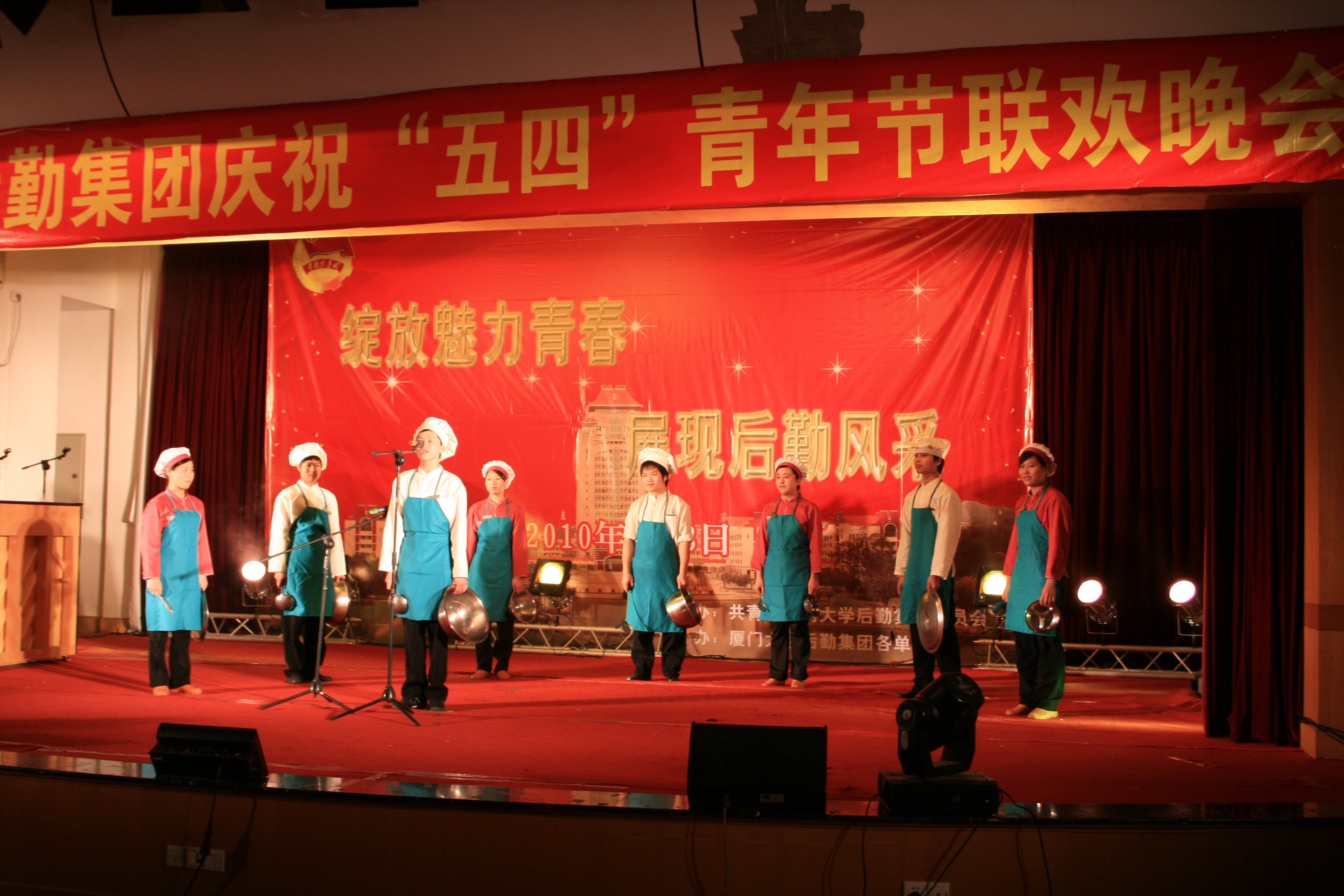 绽放魅力青春 展现后勤风采 ——后勤集团隆重举办庆祝“五四”青年节联欢晚会 5月3日晚,法学院报告厅里激情高涨、欢声雷动。后勤集团青年们载歌载舞,以一个个精彩纷呈的文艺节目,迎接“五四”青年节的到来! 为庆祝五四运动91周年和中国共青团建团88周年,在后勤集团团委成立一周年的日子里,后勤集团“五四”青年节联欢晚会于当晚拉开帷幕。校团委副书记陈雪玲,后勤集团总经理谢银辉、党总支副书记庄惠美、副总经理郑庆喜等集团领导班子成员,集团一级岗位、二级岗位管理人员,各党支部书记,集团部门工会、妇委会、团委委员,全体团员,集团员工以及部分师生兴致勃勃地观看了演出。 庄惠美首先代表集团领导班子致辞,对晚会的举办表示热烈祝贺,并对广大团员提出了希望。她指出,后勤集团成立七年多来,形成了一支“特别能吃苦、特别能战斗、特别能奉献”的后勤服务队伍,这当中,广大团员青年充分发挥了生力军和突击队作用,紧紧围绕学校教育事业的大局努力做好各项后勤服务保障工作,取得了令人鼓舞的业绩,赢得了广大师生的肯定。希望广大青年团员再接再厉、与时俱进、锤炼品德、勤奋学习、努力工作、甘于奉献,在今后的工作岗位中再立新功! 在晚会正式开始之前,全体肃立,为4月14日在玉树地震中不幸遇难的同胞们默哀一分钟。 接着,晚会在物业公司的诗朗诵《生命的光芒——致玉树地震》拉开帷幕,诗歌寄托了后勤集团全体员工对玉树地震中受灾群众的同情和鼓励;水电中心卢海滨的歌唱和手语表演《我相信》,表达了后勤人自信自强的坚韧品格;公环中心的安防队列训练,以一系列整齐划一的动作,展现了后勤安防队员的飒爽英姿;由饮食中心餐厅一线员工组织的三句半《餐厅赞歌》,以最朴实的语言,最真挚的感情,抒发了饮食员工爱岗敬业的朴素情怀;漳州校区宾馆的街舞表演《青春飞扬》舞动的是后勤青年朝气蓬勃的精神风貌;饮食合唱团的钢琴伴奏小组唱加伴舞《回娘家》、《美丽的孔雀》以分声部合唱技巧展现后勤员工的艺术天赋;矿泉水公司的肚皮舞表演《kiss》在快速的旋律中舞动激情,掀起全场观众欢呼热潮;物业公司魏城林的独唱《爷爷泡的茶》、陈雪琴的独唱《风含情水含笑》和接待中心董茂盛的独唱《柠檬树》在掌声和鲜花中展示后勤实力派业余歌手的风姿;而物业公司张银坤的太极表演让观众们领略到中国武术的瑰宝;公环中心的《20年后再相会》,以庞大的阵容、强烈的渲染力把整场晚会推向了最高潮! 绽放魅力青春,展现后勤风采。后勤集团青年们在“五四”晚会中尽情展现自我风采,深情抒发真切情怀!通过本次晚会的举办,增强了广大后勤青年的凝聚力和向心力,大家纷纷表示要在今后的后勤服务保障工作中,继续秉承“五四”精神,以更加昂扬的斗志,更加豪迈的气魄、更加务实的作风、更加扎实的工作,用自己勤劳的双手、火热的青春和澎湃的激情为学校和集团的明天再续时代绚丽的篇章! 后勤集团团委:林 琳 2010年5月4日