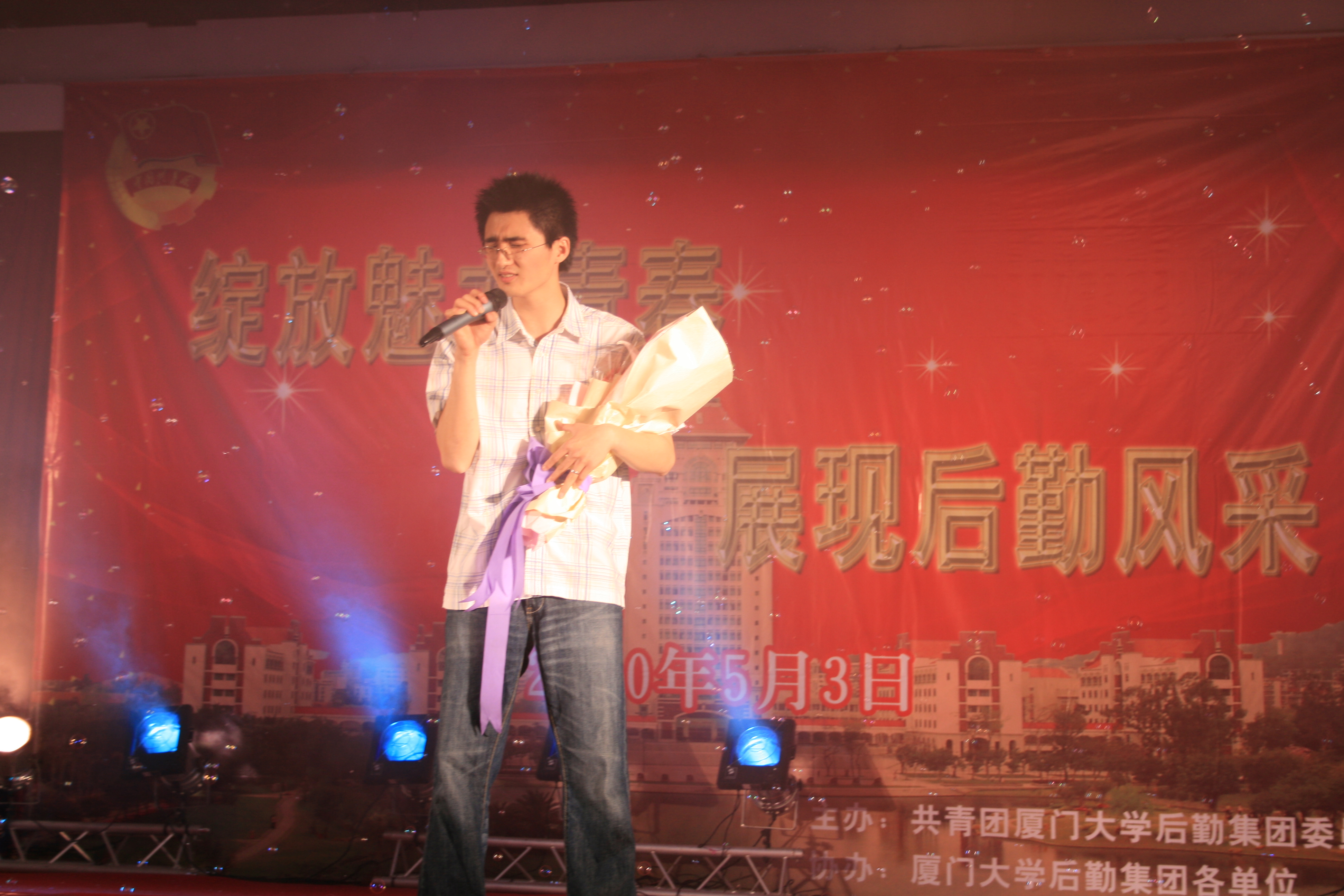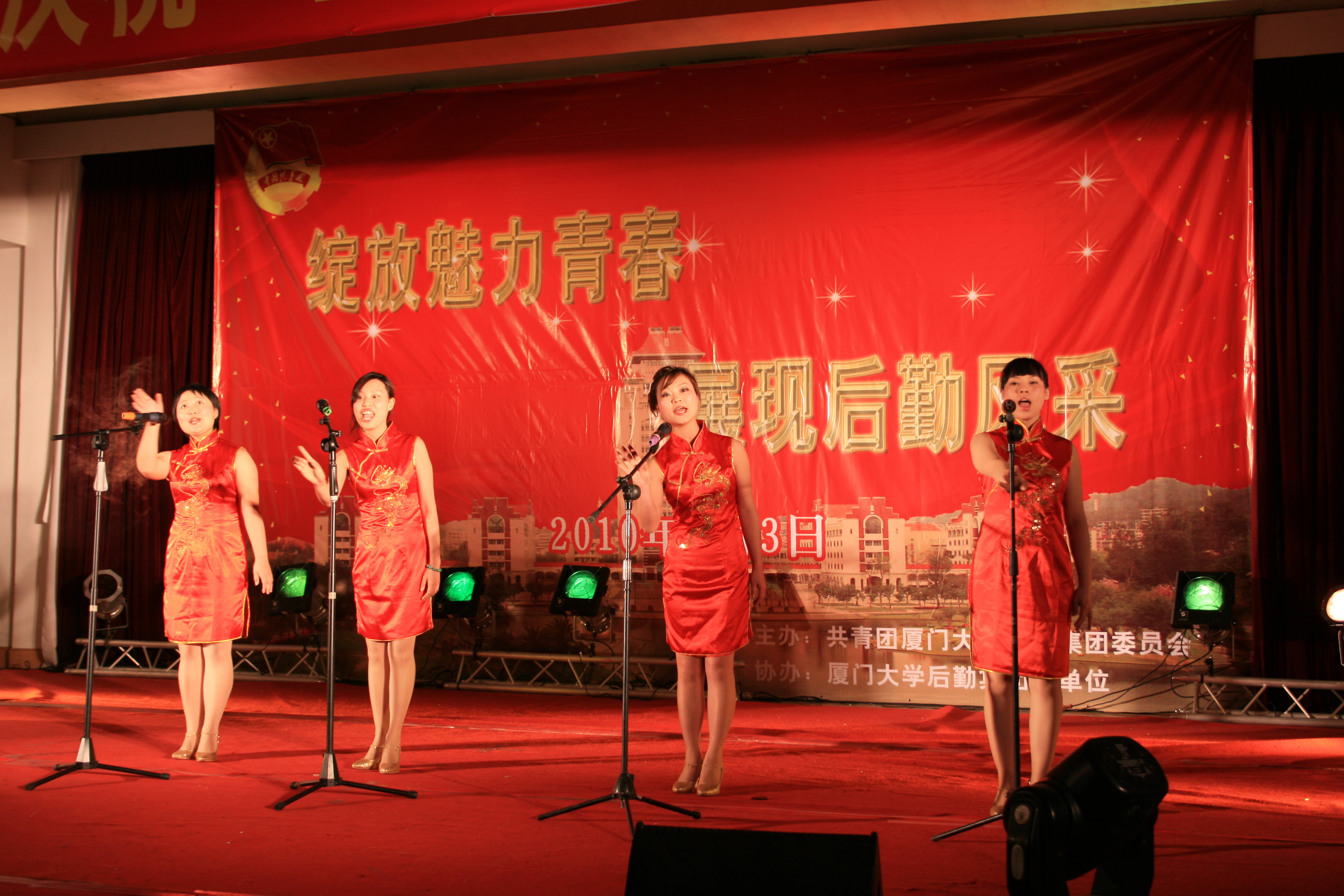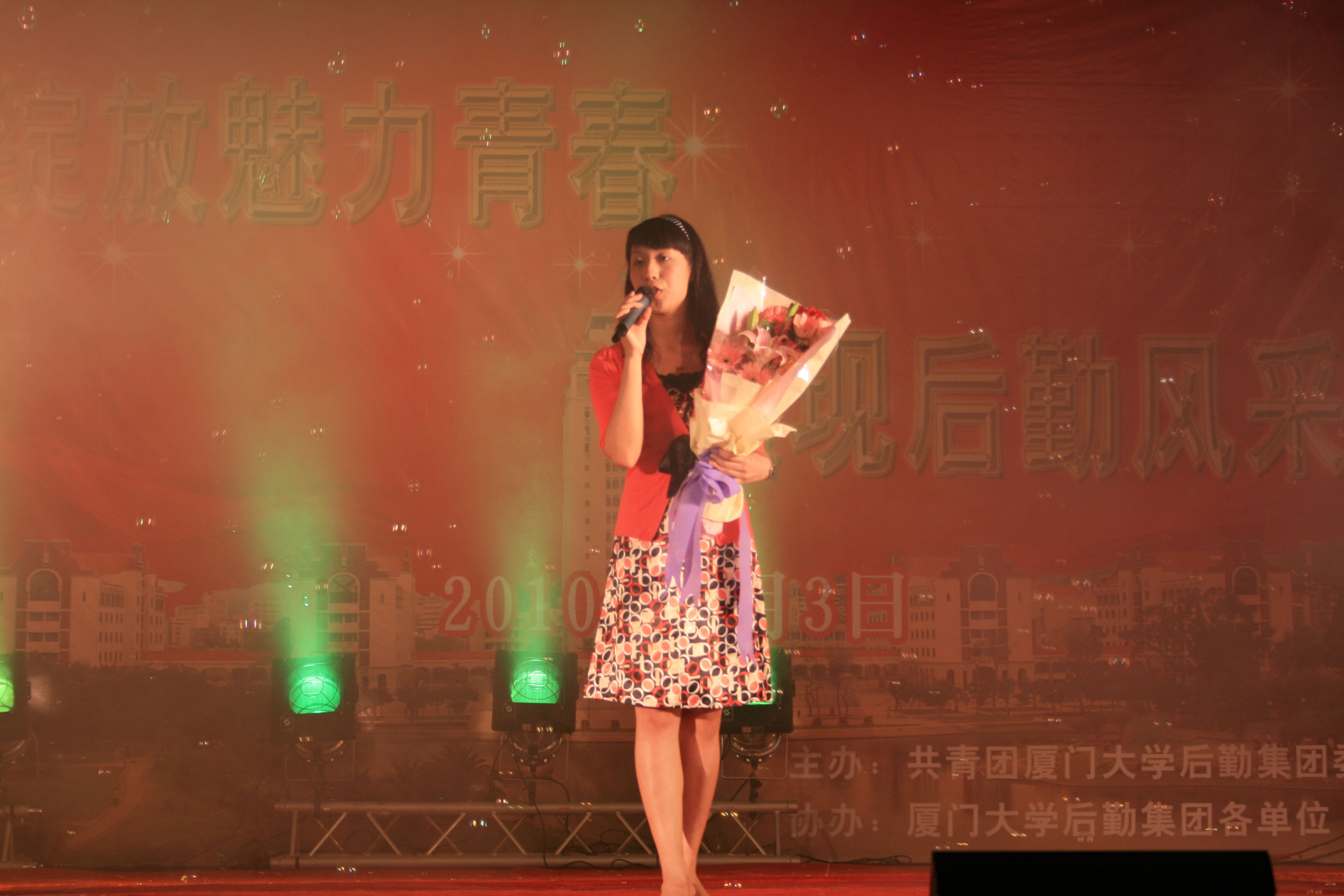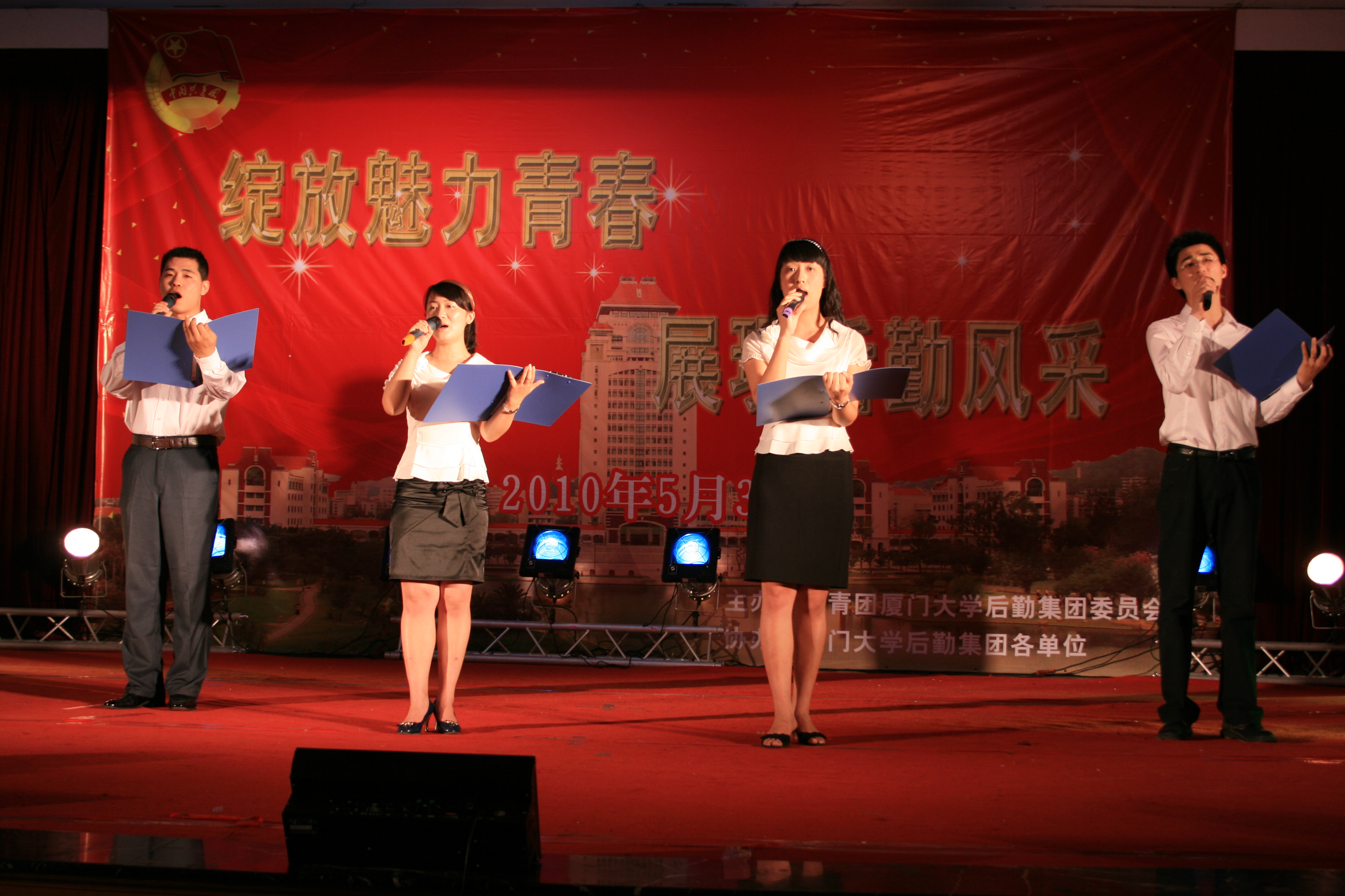 绽放魅力青春 展现后勤风采 ——后勤集团隆重举办庆祝“五四”青年节联欢晚会 5月3日晚,法学院报告厅里激情高涨、欢声雷动。后勤集团青年们载歌载舞,以一个个精彩纷呈的文艺节目,迎接“五四”青年节的到来! 为庆祝五四运动91周年和中国共青团建团88周年,在后勤集团团委成立一周年的日子里,后勤集团“五四”青年节联欢晚会于当晚拉开帷幕。校团委副书记陈雪玲,后勤集团总经理谢银辉、党总支副书记庄惠美、副总经理郑庆喜等集团领导班子成员,集团一级岗位、二级岗位管理人员,各党支部书记,集团部门工会、妇委会、团委委员,全体团员,集团员工以及部分师生兴致勃勃地观看了演出。 庄惠美首先代表集团领导班子致辞,对晚会的举办表示热烈祝贺,并对广大团员提出了希望。她指出,后勤集团成立七年多来,形成了一支“特别能吃苦、特别能战斗、特别能奉献”的后勤服务队伍,这当中,广大团员青年充分发挥了生力军和突击队作用,紧紧围绕学校教育事业的大局努力做好各项后勤服务保障工作,取得了令人鼓舞的业绩,赢得了广大师生的肯定。希望广大青年团员再接再厉、与时俱进、锤炼品德、勤奋学习、努力工作、甘于奉献,在今后的工作岗位中再立新功! 在晚会正式开始之前,全体肃立,为4月14日在玉树地震中不幸遇难的同胞们默哀一分钟。 接着,晚会在物业公司的诗朗诵《生命的光芒——致玉树地震》拉开帷幕,诗歌寄托了后勤集团全体员工对玉树地震中受灾群众的同情和鼓励;水电中心卢海滨的歌唱和手语表演《我相信》,表达了后勤人自信自强的坚韧品格;公环中心的安防队列训练,以一系列整齐划一的动作,展现了后勤安防队员的飒爽英姿;由饮食中心餐厅一线员工组织的三句半《餐厅赞歌》,以最朴实的语言,最真挚的感情,抒发了饮食员工爱岗敬业的朴素情怀;漳州校区宾馆的街舞表演《青春飞扬》舞动的是后勤青年朝气蓬勃的精神风貌;饮食合唱团的钢琴伴奏小组唱加伴舞《回娘家》、《美丽的孔雀》以分声部合唱技巧展现后勤员工的艺术天赋;矿泉水公司的肚皮舞表演《kiss》在快速的旋律中舞动激情,掀起全场观众欢呼热潮;物业公司魏城林的独唱《爷爷泡的茶》、陈雪琴的独唱《风含情水含笑》和接待中心董茂盛的独唱《柠檬树》在掌声和鲜花中展示后勤实力派业余歌手的风姿;而物业公司张银坤的太极表演让观众们领略到中国武术的瑰宝;公环中心的《20年后再相会》,以庞大的阵容、强烈的渲染力把整场晚会推向了最高潮! 绽放魅力青春,展现后勤风采。后勤集团青年们在“五四”晚会中尽情展现自我风采,深情抒发真切情怀!通过本次晚会的举办,增强了广大后勤青年的凝聚力和向心力,大家纷纷表示要在今后的后勤服务保障工作中,继续秉承“五四”精神,以更加昂扬的斗志,更加豪迈的气魄、更加务实的作风、更加扎实的工作,用自己勤劳的双手、火热的青春和澎湃的激情为学校和集团的明天再续时代绚丽的篇章! 后勤集团团委:林 琳 2010年5月4日
