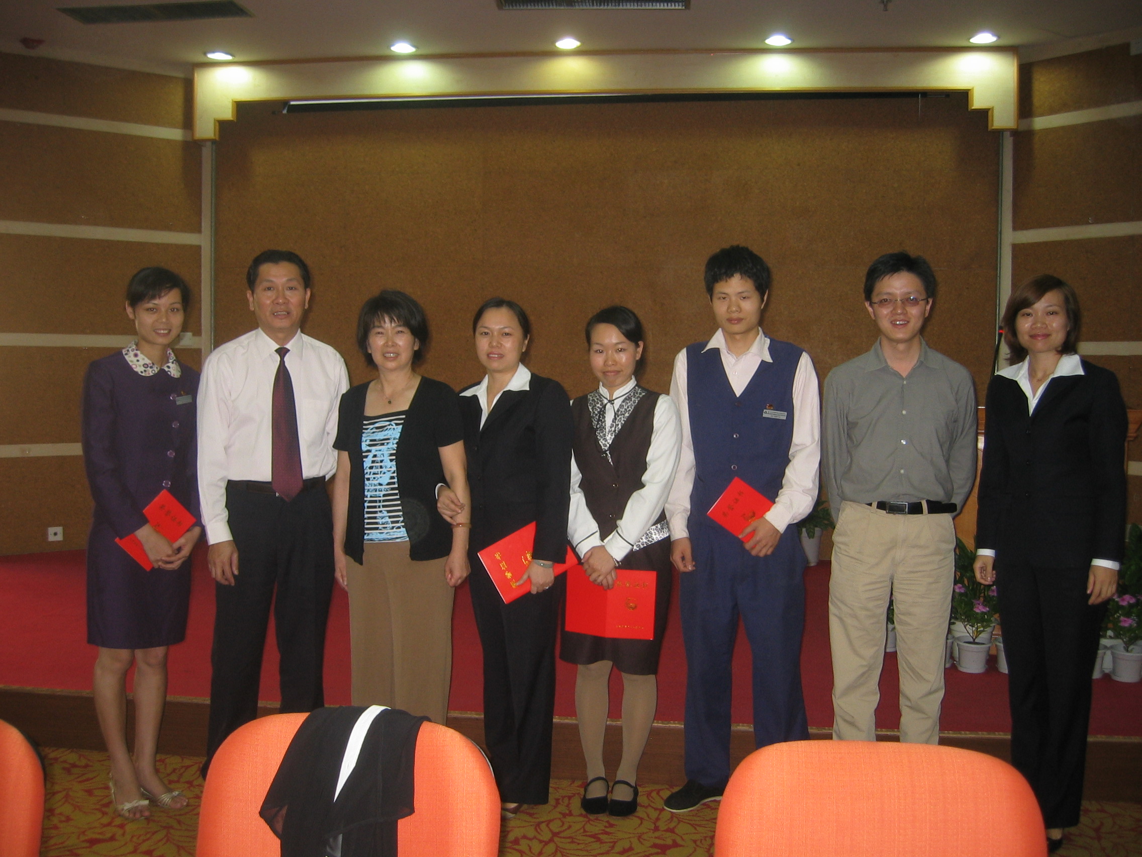 后勤集团团委召开接待服务中心团总支成立大会 11月6日下午3:30,后勤集团接待服务中心团总支成立大会在克立楼三楼报告厅召开,接待服务中心各部门团员代表参加了会议。后勤集团党总支副书记庄惠美,接待服务中心主任朱子申莅会指导。会议由后勤集团团委书记林琳主持。 会上,林琳首先介绍了后勤集团团委的成立过程以及接待服务中心各团支部的组建方案,并提议接待服务中心团总支书记、组织委员、宣传委员以及文体委员候选人预备人选。经与会代表表决通过,周华萍同志担任接待服务中心团总支书记,董茂盛同志担任接待服务中心团总支副书记和第一团支部书记,花素萍同志担任接待服务中心团总支组织委员和第二团支部书记,王丽虹同志担任接待服务中心团总支宣传委员和第三团支部书记,张雅梅同志担任接待服务中心团总支文体委员。 周华萍代表接待服务中心团总支感谢集团及中心领导的重托以及全体团员青年的信任,表示将全力以赴做好接待服务中心团总支的各项工作,发挥好桥梁纽带的作用,为党组织积极培养优秀后备力量,同时开展丰富多彩的团员活动,使团组织成为接待服务中心年轻人的精神家园,不辜负各级领导的期望及青年团员们的信任。 朱子申在会上要求团员青年要充分认识到自身肩负的社会责任,不断提高自身综合素质与能力,立足岗位、开拓进取,把握中心的服务宗旨,弘扬中心的文化与精神。并在会上宣布,中心将成立女子合唱队,这不仅丰富了中心员工的业余生活,而且进一步提升了中心的企业文化。 庄惠美在讲话中指出,团员干部要增强自身修养,加强团章学习,加强与党组织的互动,充分发挥青年团员的积极性、主动性,坚持向书本学习、向社会学习、向群众学习,为后勤集团营造良好的文化氛围,并祝贺中心女子合唱队成立。 与会领导还分别为荣获厦门大学2008-2009年度“红旗团支部”荣誉称号的客房部团支部、荣获厦门大学2008-2009年度 “优秀团支部书记”荣誉称号的张锦恋同志、荣获厦门大学2008-2009年度“优秀共青团员”荣誉称号的庄彩云、陈碧惠及陈吓河等同志颁发了荣誉证书,并合影留念。 接待服务中心 张雅梅 报道