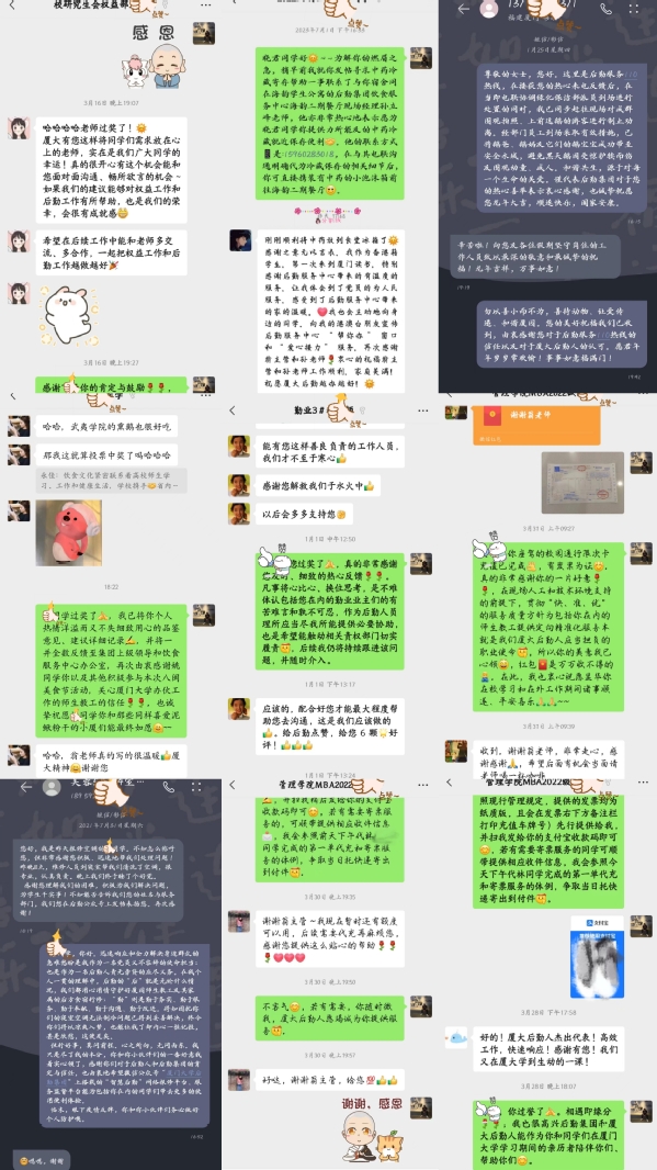 虽然思明校区后勤服务大厅在寒暑假期间处于闭厅阶段,但为满足服务对象对于诸如“不动产资料登记查询打印”“亲属关系证明查询打印”等子女入学入园必备材料打印,“敬老卡申办”“e通卡充值”等敬老服务以及“临时身份证打印”“医社保缴费信息查询打印”等高频市政项目办理的不时之需,只要拨通后勤110服务热线,哪怕身处校外,翁永佳依然会报以“随叫随到”的服务热忱,即刻赶往校内,确保师生教工及其眷属急需市政服务持证(身份证)刷脸秒办不断档。在翁永佳眼中,寒来暑往、年又一年的执着坚守、俯身奉献早已是深入厦大后勤人骨髓,溶入厦大后勤人血脉的情操。