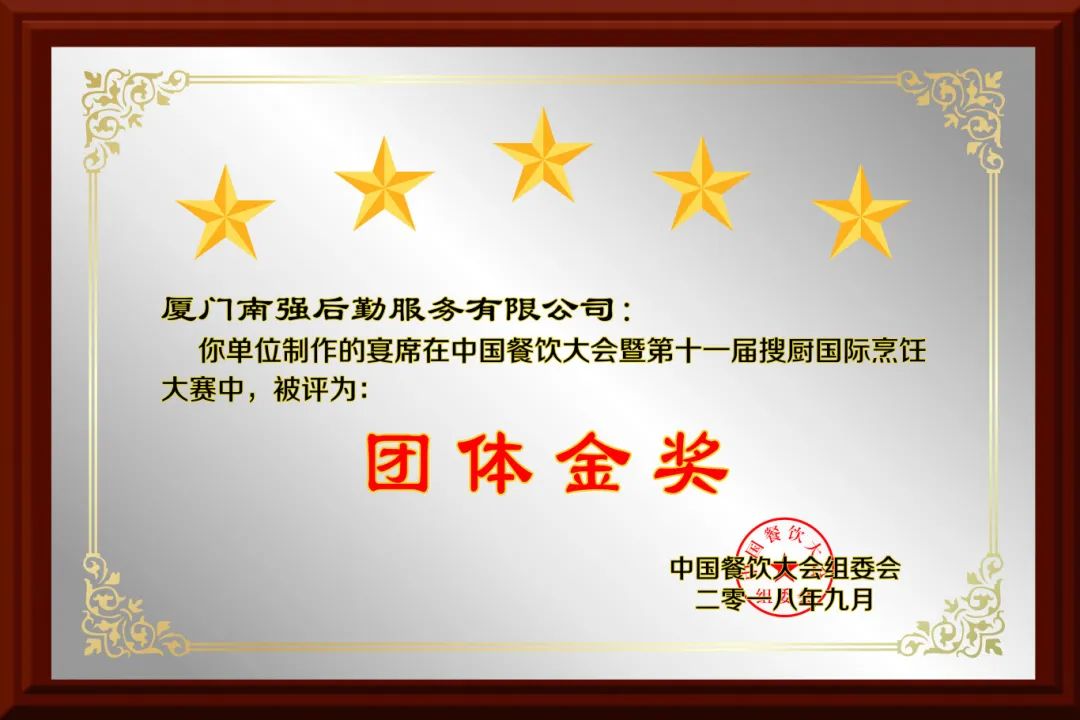令人可喜的是,由公司总经理罗阳领队,林勇老师指导,公司团队于本次大赛中斩获了团队金奖、厨师个人蓝钻奖、金勺奖、特金奖、金奖、银奖,并喜获“国际绿色餐饮企业”的荣誉称号!