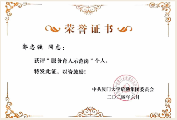 在防疫物资十分紧缺的情况下,郭志强同志从家里拿出原本就所剩不多的口罩,妥善地包封起来,放在车里,以备让有需要的老师使用。他还积极奉献爱心,在学校组织的抗疫捐款中,用自己的行动传播正能量。在多场错峰返校任务中,他挺身而出,主动承担最后一班的接送任务,每每回到家已是凌晨。但当问起他这样的工作是否太辛劳?他却说:“哪有不累,只是疫情就是命令,防控就是责任,保护师生就是我们的义务和使命。”2020年11月他被厦门大学表彰为“抗击新冠肺炎疫情先进个人”。