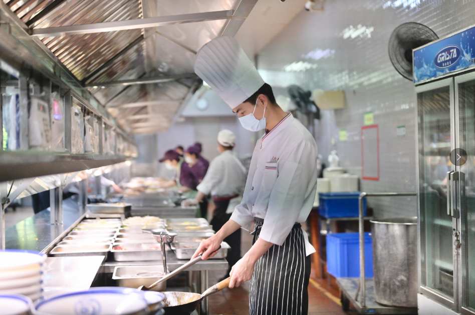 天道酬勤,林庆元带着对餐饮行业浓厚的兴趣与勤恳的学习态度入行,在基层工作岗位上表现出色并展现出了不俗的天赋,同时,他具备了对餐饮敏锐的觉察力与创新能力,渐渐地在后厨工作中崭露头角。通过脚踏实地的学习实践与经验积累,林庆元用时间与行动证明了自己,担任了勤业餐厅厨师长一职。无论是实战操作或是后厨管理,林庆元始终坚持虚心学习、提升自我,积极争取参加每一次学习与考核的机会,成功时不骄不躁、再接再厉,失败时不气不馁、总结原因再拼搏。他深知,唯有不断精进技艺,方能不负众望,继续在餐饮一线发光发热,为师生提供更优质的服务。