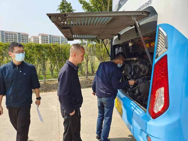 运输服务中心邀请金龙公司技术人员到翔安车库检修维护车辆,为开学后保障师生出行提供更加可靠的安全保障。