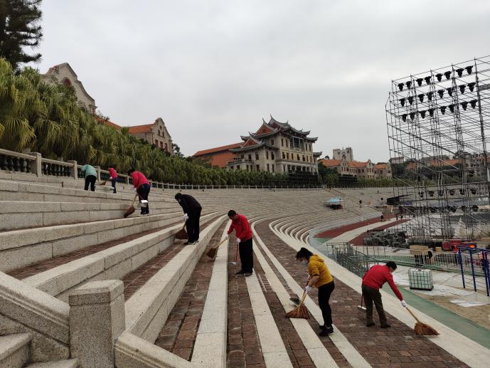 根据学校百年校庆工作安排,校庆文艺晚会将于4月6日在上弦场举行。目前,会场舞台搭建及晚会节目排练等正紧张有序地进行中。为确保晚会筹备各项工作顺利进行,在学校资产与后勤事务管理处和集团的指导下,学生公寓与环境服务中心精心组织,扎实做好会场保障工作。