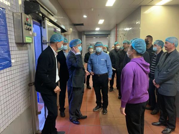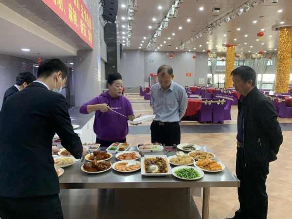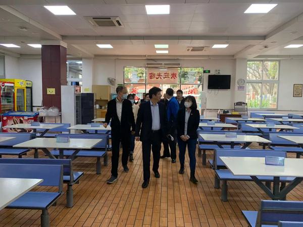 校领导带队到食堂进行安全卫生检查,查看文明食堂建设进度,确保为校庆营造优美温馨的用餐环境,以良好的精神风貌迎接百年校庆。