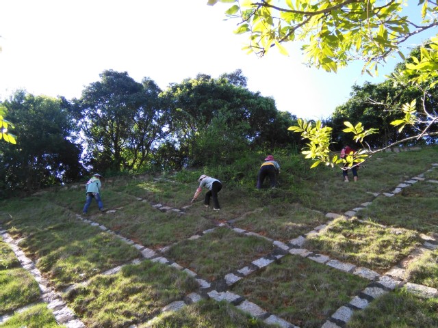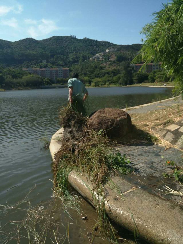 公环中心翔安校园服务部 斩草侠--酷暑中全副武装的绿化员工