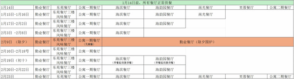 餐厅供餐安排: