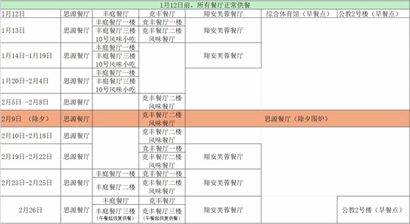 2.其中 2月6日-2月14日:闭馆(设备检修、场馆维护、健身房地毯全面清洗晾干)。