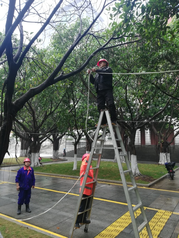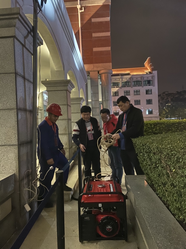 跨年舞会前夕,水电服务中心已早早做好充足准备,精心筹划元旦跨年舞会的供电保障及应急处理方案,准备期间(12月29—30日)正遇雨天,中心冒雨提前做好临时电源及临时照明的安装、应急电源的布设,并细致做好防水防漏电等措施,以确保现场用电安全。