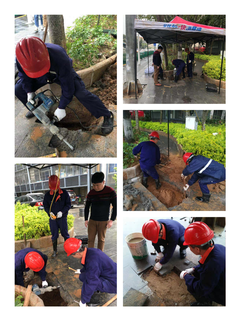 3月雨季到来,或大雨瓢泼、或连绵细雨,持续的强降雨给水电维修师傅们的户外作业带来极大难度。3月5日上午,接用户报修,水电服务中心的维修师傅们积极赶赴现场,顶风冒雨抢修芙蓉三、成伟四进水管漏水问题。