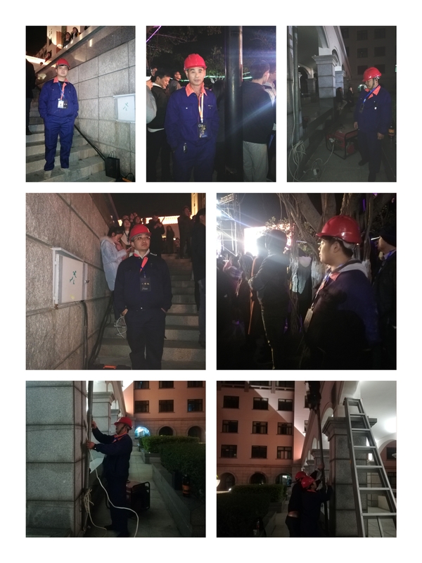 元旦假期期间进行舞会彩灯带布置及临时供电设备安装准备