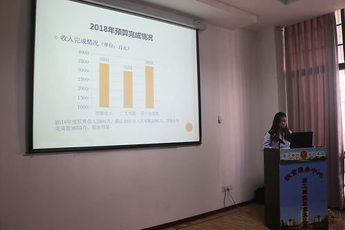 各部门汇报人员结合PPT演示说明,汇报2018年度预算执行情况、2019年度预算编制依据及各类指标。