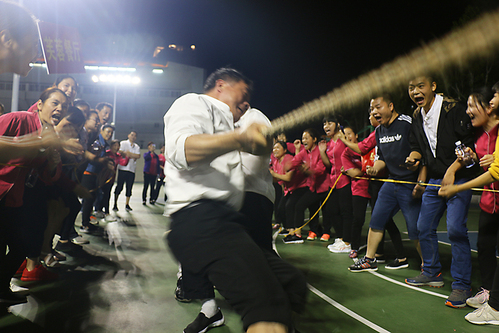 本次趣味运动会设有个人项目呼啦圈、跳绳、定点投篮和集体项目拔河、时空隧道、背靠背夹球共6个项目。倍受瞩目的拔河比赛共有5支队伍参加,分别是勤业餐厅队、芙蓉餐厅队、二期餐厅队、机构光队(机修组、采购组、南光餐厅)和海之队(海韵园餐厅、海滨餐厅、一期餐厅),比赛采用循环赛制,按积分总和取三甲。