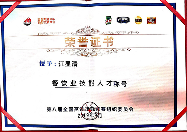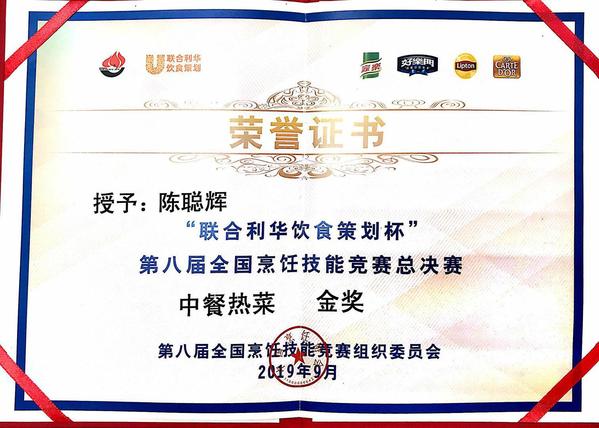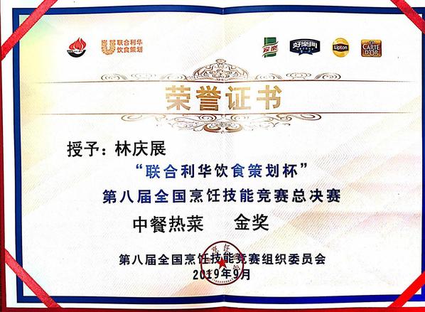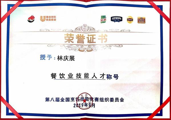 饮食服务中心三名选手江显清、林庆展、陈聪辉,凭借自身高超的厨艺, 一路披荆斩棘,最终在全国众多优秀选手中脱颖而出,均荣获“第八届全国烹饪技能竞赛总决赛中餐热菜”金奖,并被授予“餐饮业技能人才”称号。
