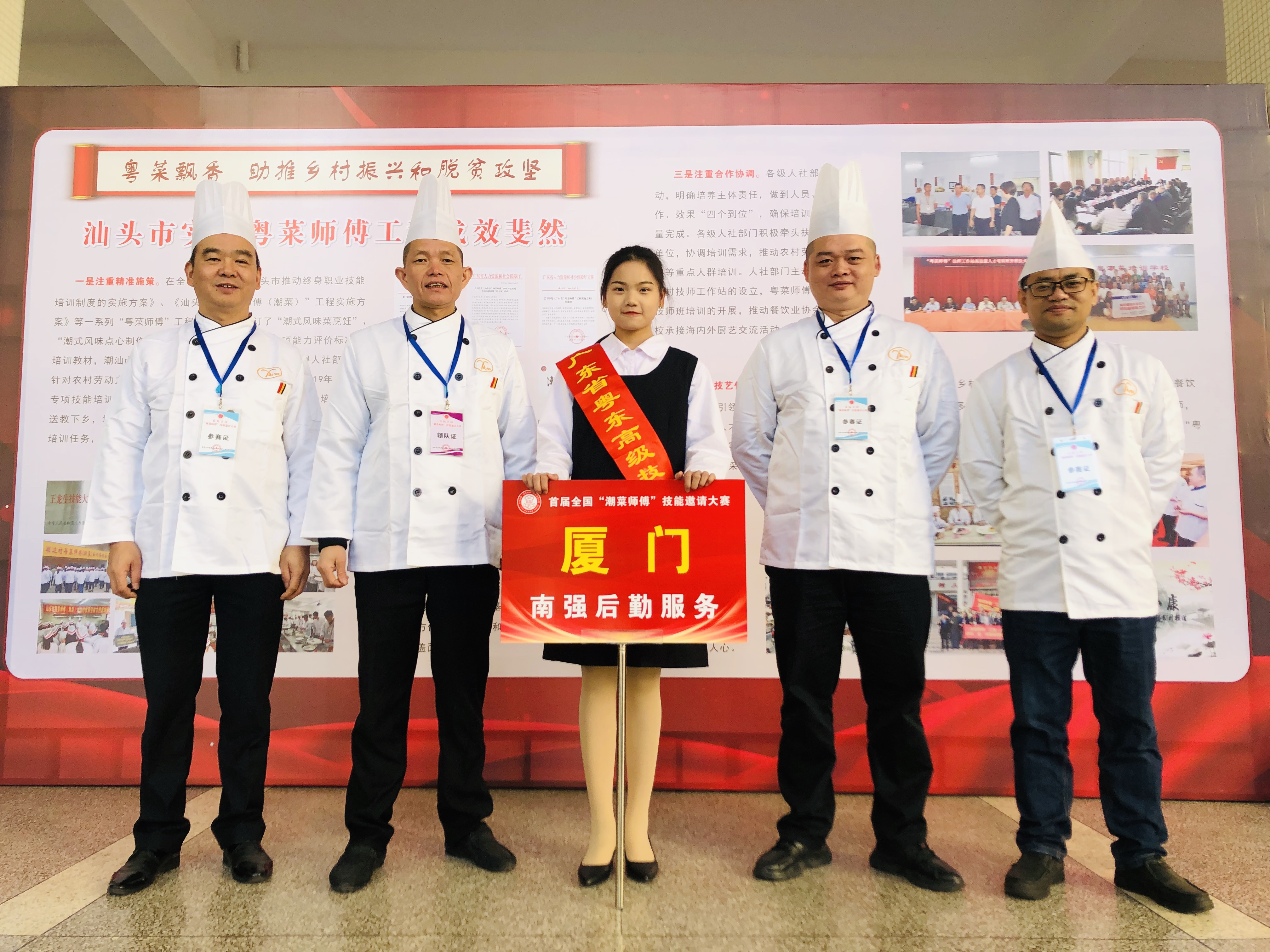 12月7-8日,来自全国13个省市30支团队(90名选手)、60名个人选手秉承精益求精、传承与创新的工匠精神,齐聚广东省汕头市,参与首届全国“潮菜师傅”技能邀请大赛。厦门南强后勤服务有限公司代表队从众多参赛队伍中脱颖而出,荣获团体赛特金奖,赵智勇荣获个人赛金奖,吴先营荣获个人赛银奖。