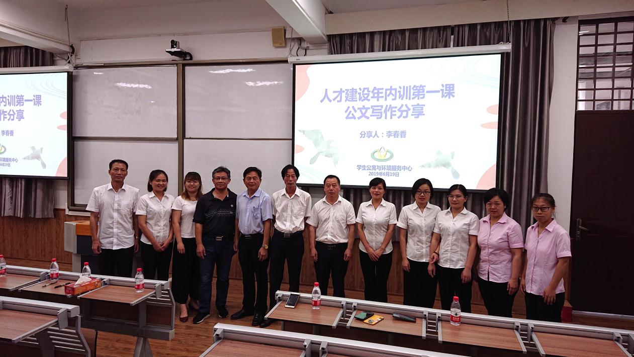 为进一步推进集团人才建设年的人才队伍建设工作,整体提升中心员工队伍竞争力,提高各部门综合服务水平,为学校百年校庆提前做好全方位准备,学生公寓与环境服务中心在开展各项技能提升培训的基础上,整合内部资源,于6月19日下午在南强二403教室开展人才建设年内训第一课,中心主任张金满,副主任张国强、刘宜辉、黄团良及管理骨干参加了本次内训课。集团人力资源部副经理麻燕凌到场指导。
