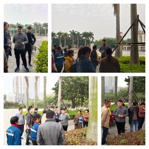 闫经理用PPT结合图片展示,针对不同时期病虫害、厦门市常见病虫、灌木疾病施用农药技巧和在施用农药时如何防护等内容进行了详细说明,指导员工在春季夏季施肥过程中分不同时期正确规范使用农药,降低农药对植被产生的伤害。闫经理还鼓励在场养护人员对日常中遇见病虫害进行举例讨论,随后带队进行现场教学,针对漳州校区草坪养护存在的不足进行分析。黄团良与在场员工积极参与讨论,虚心向专业人员请教。