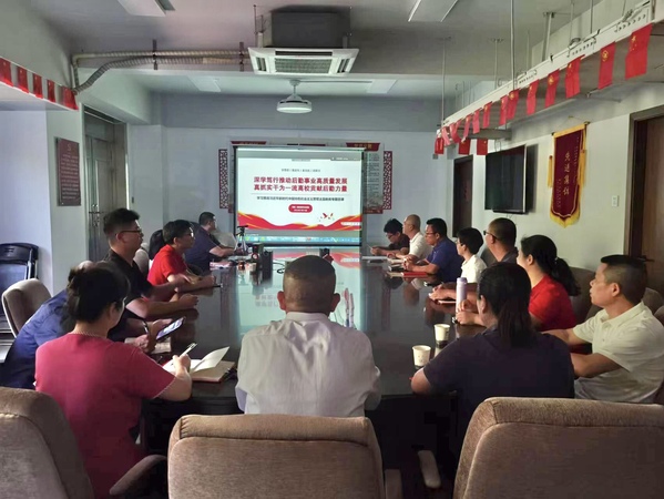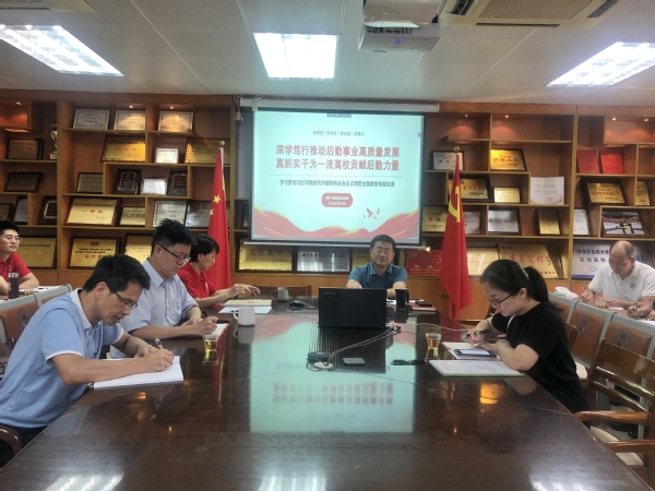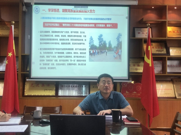 按照学校和集团主题教育部署,7月14日下午,集团总经理杨旸在集团会议室为本部党支部党员、发展对象上《深学笃行推动后勤集团高质量发展 真抓实干为一流高校贡献后勤力量》主题教育专题党课。同时,漳州校区服务办党支部全体党员也在线上参加党课。