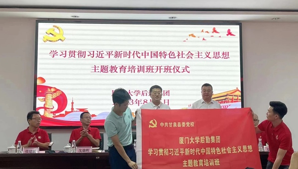 8月5日,在开班式上,甘泉县委党校常务副校长郭毅作了欢迎致辞并简要介绍了延安红色历史文化;杨旸在动员讲话中指出主题教育的重要意义,希望大家通过思想上高度重视、行动上高度自觉、落实上高度负责的态度,从突出重点、创新方式、联系实际三个方面全方位多角度的进行学习,切实把党建核心优势转化成集团生产经营的发展优势,发挥所学所长不断提升经营质效,推动集团高质量发展,并强调了本次培训的学习要求、纪律要求和安全要求。开班仪式上杨旸与甘泉县委党校常务副校长郭毅为此次开班授予班旗。