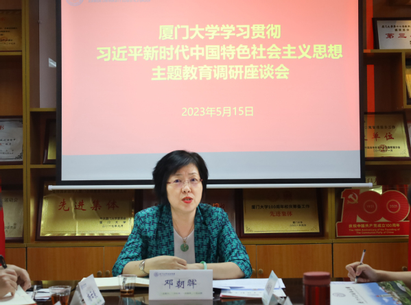 邓朝晖对后勤集团和校工会、文博管理中心、信息与网络中心四个服务保障部门在构建服务育人协同机制方面所做的工作表示肯定。她表示,要深刻理解这次主题教育的重要意义,开展主题教育是加强党的政治建设,坚持不懈用习近平新时代中国特色社会主义思想凝心铸魂的重要举措;是学校在奋进一流征程,实现学校事业高质量内涵式发展道路上的一次重要的教育活动。她进一步强调,主题教育要围绕立德树人这个根本任务,形成协同育人机制,形成育人的合力;要让服务育人的理念更加深入,育人的职责更加明晰,育人的环境更加优化,育人的载体更加丰富,育人的体系更加完善,育人的成效更加凸显;要以高度的责任心,强烈的使命感和高效的执行力,着力解决在理论学习、政治素养、能力本领、担当作为、工作作风、廉洁自律等方面的突出问题,确保主题教育活动取得成效。