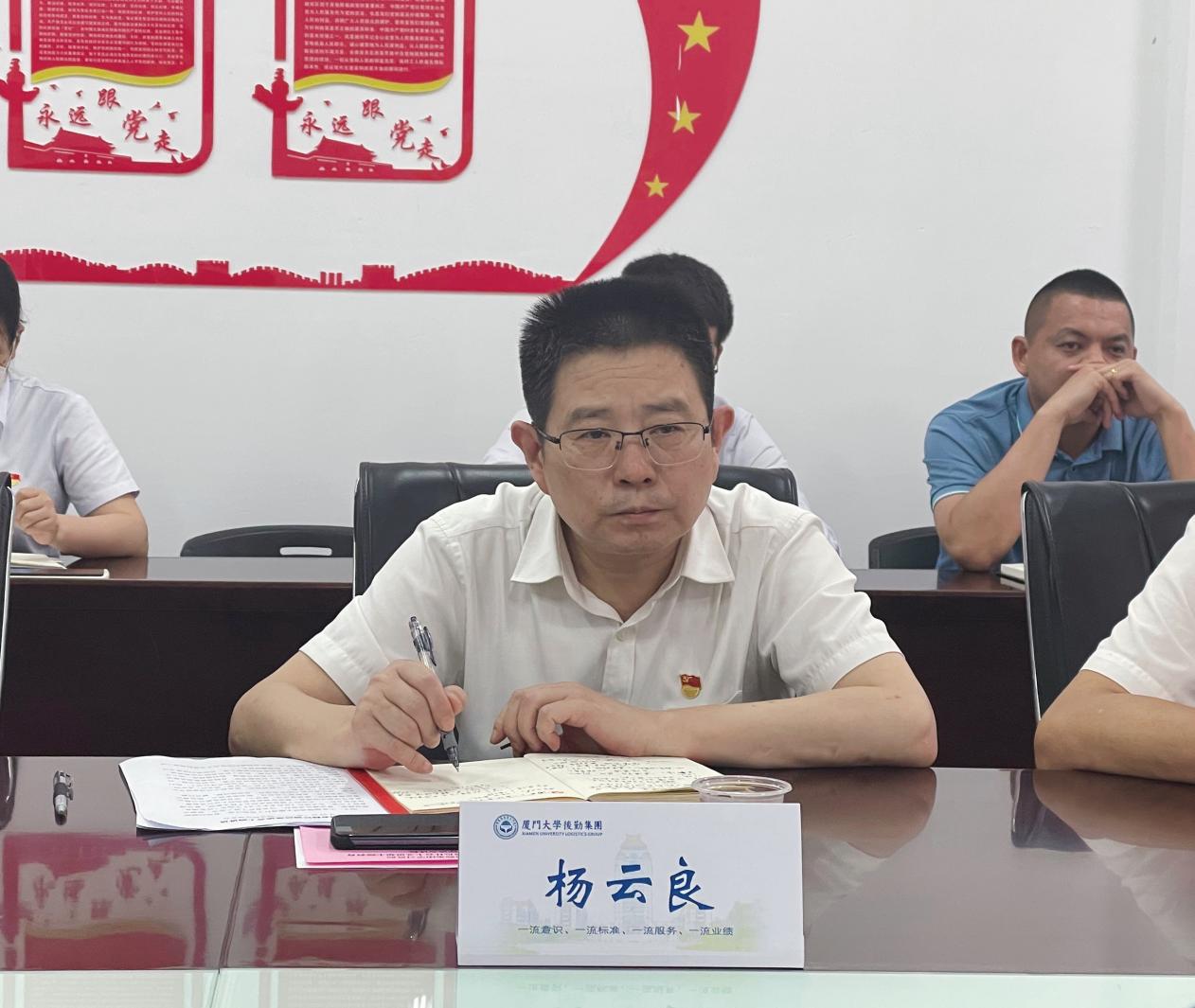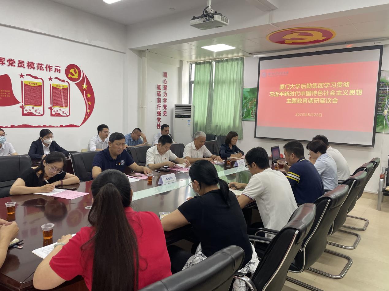 按照集团学习贯彻习近平新时代中国特色社会主义思想主题教育安排部署,5月22日下午,集团党委书记杨云良,副总经理王裕民一行到翔安校区服务办召开主题教育专题调研座谈会,集团总经理助理、翔安校区服务办公室主任汪尚谦主持座谈会。