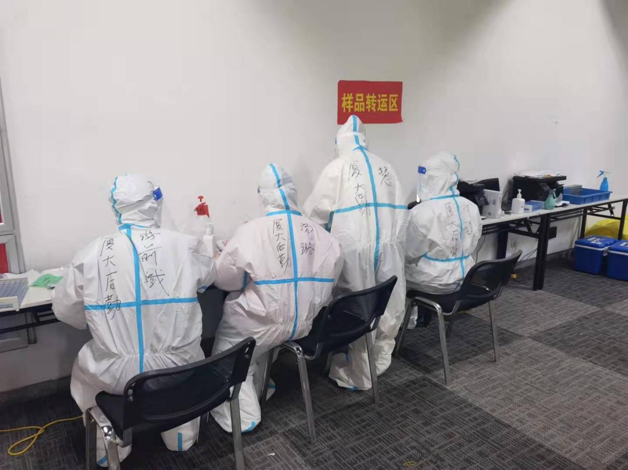 目前为止,厦门大学已承担5轮全员核酸检测,后勤集团承担了4轮全员核酸检测的样品转运工作,共转运了90000余份样品。为了战胜疫情,后勤人一刻也不曾停歇,我们坚定战“疫”,我们怀着责任、勇气与担当,竭尽所能、全力以赴,始终冲锋在一线,与时间赛跑,和病毒战斗!