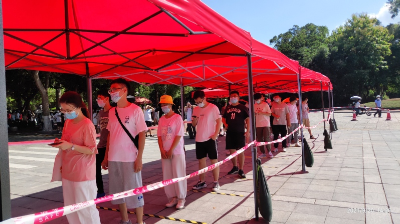9月14日,厦门市决定启动全市全民核酸检测。9月18日,厦门大学响应厦门市的疫情防控工作要求,在科艺中心设置核酸检测点,进行第二轮全员核酸检测。但核酸检测紧缺志愿者,后勤集团立即号召大家加入全员核酸检测的志愿者队伍之中,我们闻令而动,我们整装出发,我们冲锋向前,我们奋战一线。