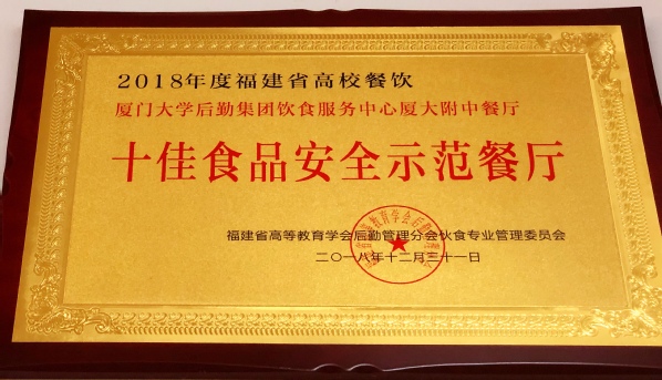 厦门大学附属中学餐厅是由后勤集团饮食服务中心托管的餐厅,因环境优雅、技术精湛、注重特色、服务周到而在师生中享有优质口碑。餐厅曾获得餐饮服务食品安全示范单位、十佳食品安全示范餐厅等荣誉称号。