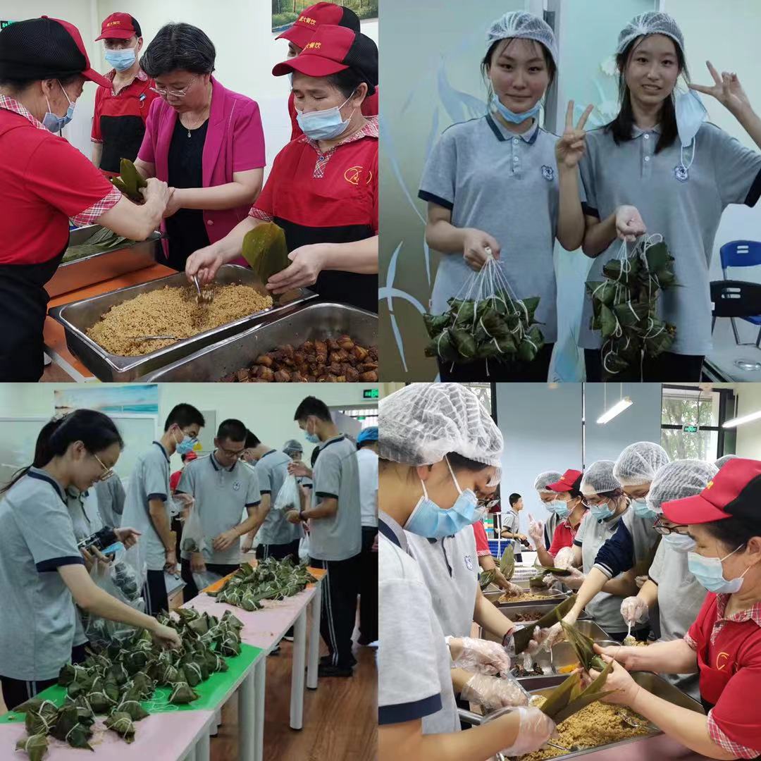 6月14日端午节当天,厦门医学院厦大餐厅与学校共同组织“我为师生办实事系列活动。”餐厅员工在端午节前,加班加点制作近7000个粽子,为每一位在校师生送上端午礼包,400多名学生在餐厅阿姨的帮助下体验了包粽子活动,并从中挑选了500个粽子送至集美区爱欣老人公寓。
