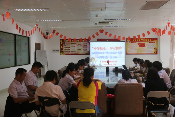 10月31日上午,漳州校区服务办党支部组织开展“不忘初心、牢记使命”主题教育,主题为后勤集团漳州校区服务办大厅一周年提升座谈。漳州校区服务办党支部支委和服务大厅全体客服人员参加了座谈会。
