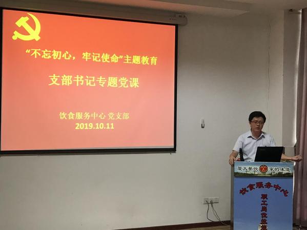 10月11日,支部书记林琳为支部全体党员上了一堂题为《带领人民创造更加幸福美好生活——学习习近平新时代中国特色社会主义思想建设有感》的专题党课,围绕习近平总书记重要讲话精神,结合饮食服务中心工作实际,畅谈如何提升餐厅管理,推进中心发展,增进师生员工福祉。