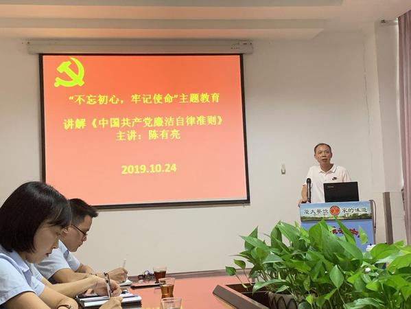 10月24日,集团党委委员、副总经理陈有亮给支部全体党员、入党积极分子、管理骨干上了一堂生动精彩的党课。他引用习近平总书记重要讲话,围绕《中国共产党廉洁自律准则》和《中国共产党纪律处分条例》,结合饮食服务中心工作实际,重新进行了解读。他要求大家再次认真学习《条例》和《准则》,深刻领会和把握两项文件出台的背景意义和科学内涵,切实做到内化于心、外化于行,做好楷模、守住底线。