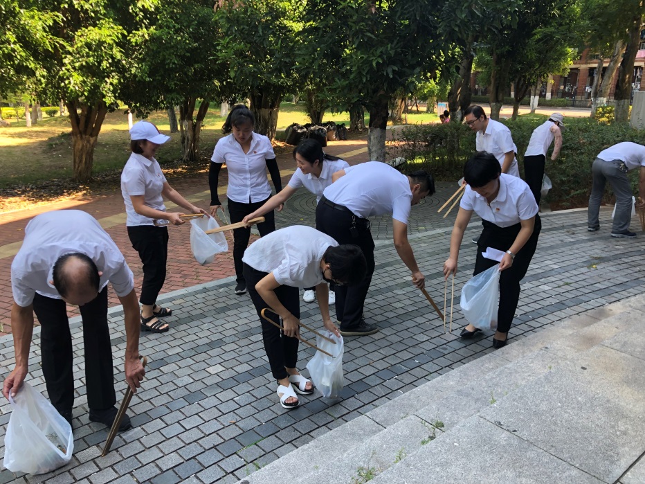 9月26日,支部以“爱校荣校”为主题,组织全体党员和青年骨干、群众员工进行流动保洁活动,清理三家村广场至嘉庚广场一带的烟头、口香糖等路面垃圾,并参观科艺中心广场前的“壮丽70年,追梦厦大人”学校七十周年办学成果图片展,追寻学校在祖国怀抱中的成长史,增强本部党支部全体员工爱校、荣校的自豪感和荣誉感。