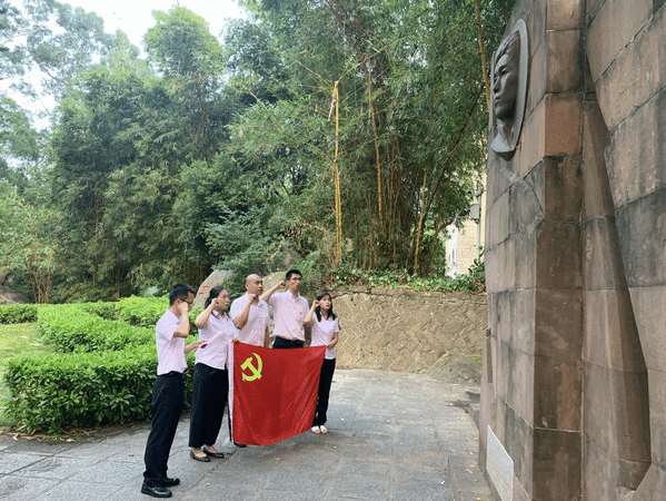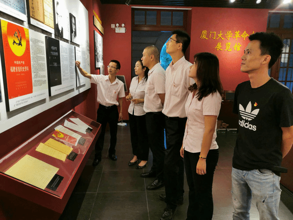 学习结束后,在林振勇书记的带领下,大家在党旗前重温入党誓词,坚定入党信仰。之后,党员同志们前往厦门大学革命史馆参观,通过了解那段峥嵘岁月,党员们更加感受到现在幸福生活的来之不易。最后,大家到罗扬才烈士像前再一次重温入党誓词,告慰英灵。