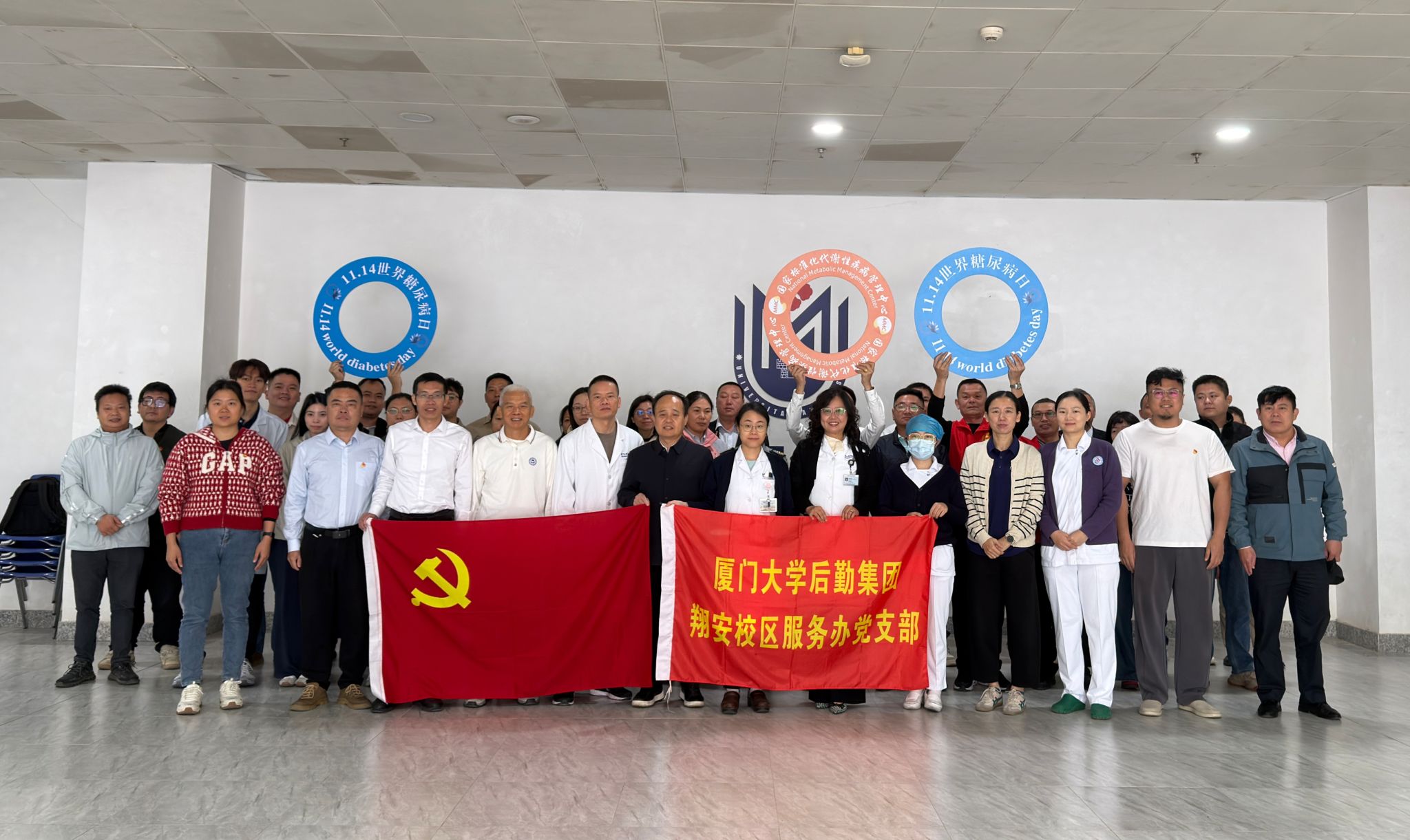 为提升全体职工对糖尿病的防治意识,倡导健康生活方式,11月19日,由厦门大学后勤集团部门工会、厦门大学附属翔安医院主办,翔安校区服务办党支部承办的“世界糖尿病日”义诊活动在翔安校区爱秋体育馆举行。集团副总经理杨建中到场指导。