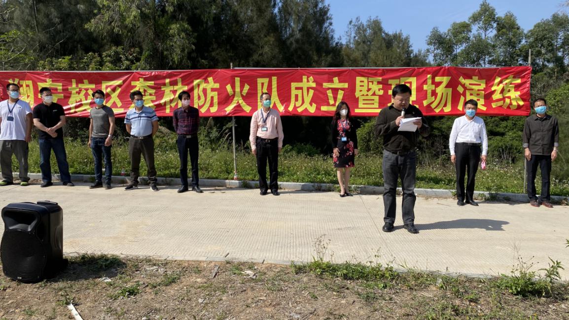 为加强校区森林防火安全工作,进一步提升处置森林火灾的综合能力,4月28日,在翔安校区管委会的指导下,由翔安校区服务办、保卫办联合组织的翔安校区森林防火队成立大会暨现场演练在植物园后山顺利举行,校长助理、翔安校区党工委书记、管委会主任陈光到场指导,翔安校区党工委副书记、管委会副主任黄宇霞和翔安校区保卫办主任陶元升分别讲话,翔安校区服务办、保卫办、资产办相关人员参加。活动由集团总经理助理、翔安校区服务办主任汪尚谦主持。