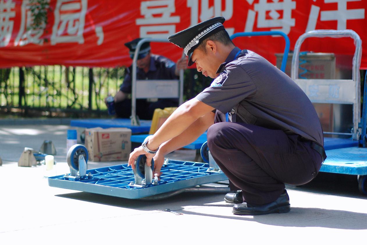 毕业季期间,安防队加强巡逻岗的巡查力度,在人员通行率较高的区域设置双岗,提高警戒,严加防范。为方便毕业生集中托运行李,安防队评估有资质的行李托运特约服务单位进驻校区开展托运工作,并联合保卫办对货运单位开展相关安全培训。此外,安防队还重新维修保养了近20部运送行李的小推车,方便离校毕业生使用。