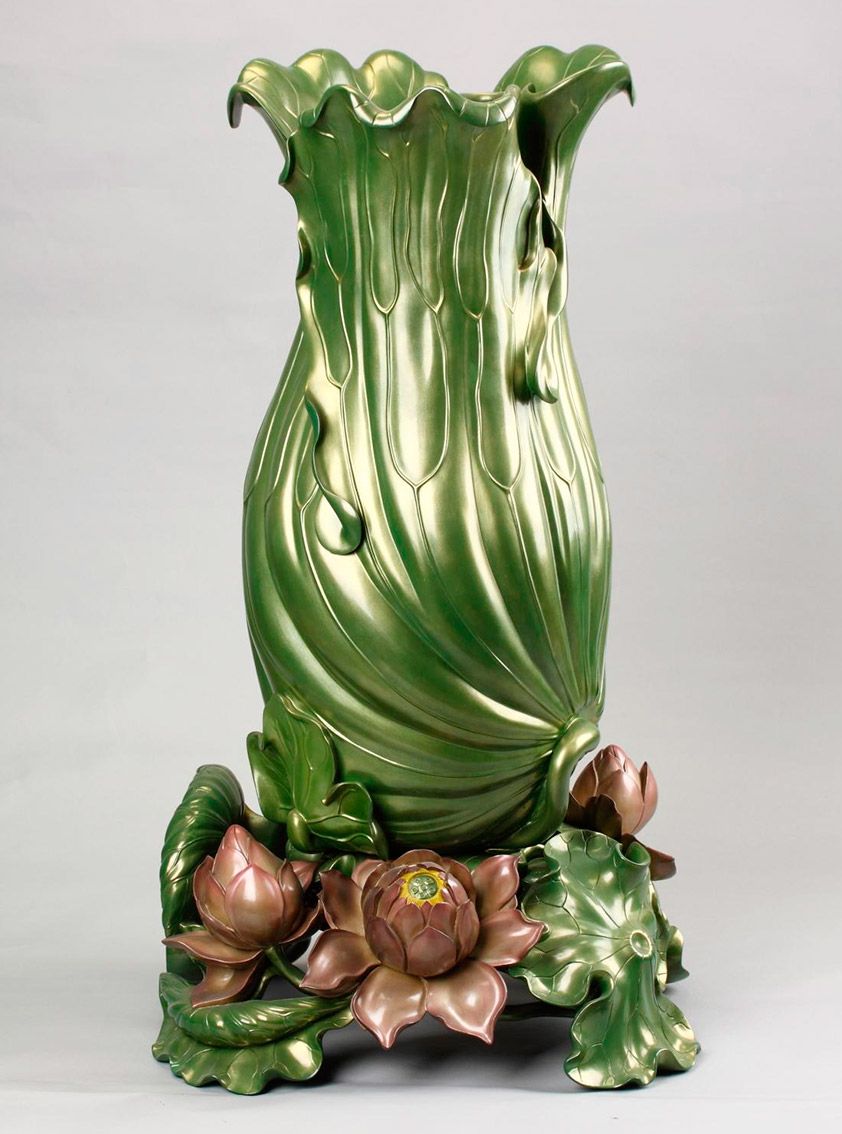 清末民初沈正镐脱胎荷叶瓶