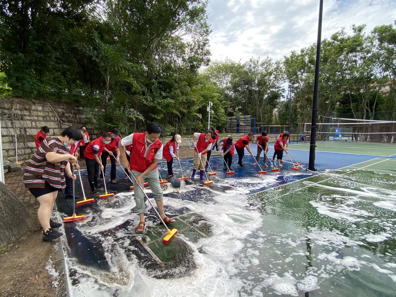 除了开展学习活动,6月10日上午,公寓党支部还组织开展了“固定党日+”清洗东苑排球场活动,旨在通过义务劳动增强党支部的凝聚力,强化党员干部的奉献意识和引领示范作用,增强服务师生、奉献学校的宗旨意识,践行弘扬劳动光荣的优良传统。