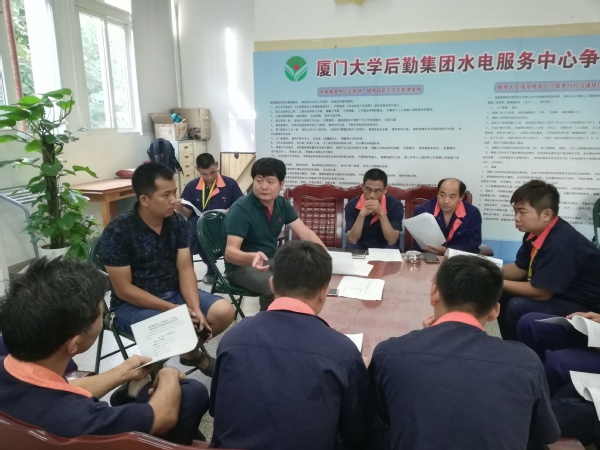 会议传达了集团关于“互联网+”大赛筹备工作冲刺阶段动员会的会议精神。张建波强调,中心承担着大赛水电保障重任,这是学校、后勤集团赋予中心的一项光荣使命,中心上下应积极响应集团“一流后勤”建设号召,以“四个一流”为目标,扎实推进水电保障工作,为学校“双一流”建设贡献水电力量;各部门要发扬水电优良传统,在前期工作的基础上,对各项保电保水措施进行再部署、再落实、再检查;大赛期间要严格执行领导带班、24小时值守制度,确保信息渠道畅通,助力大赛圆满举办。